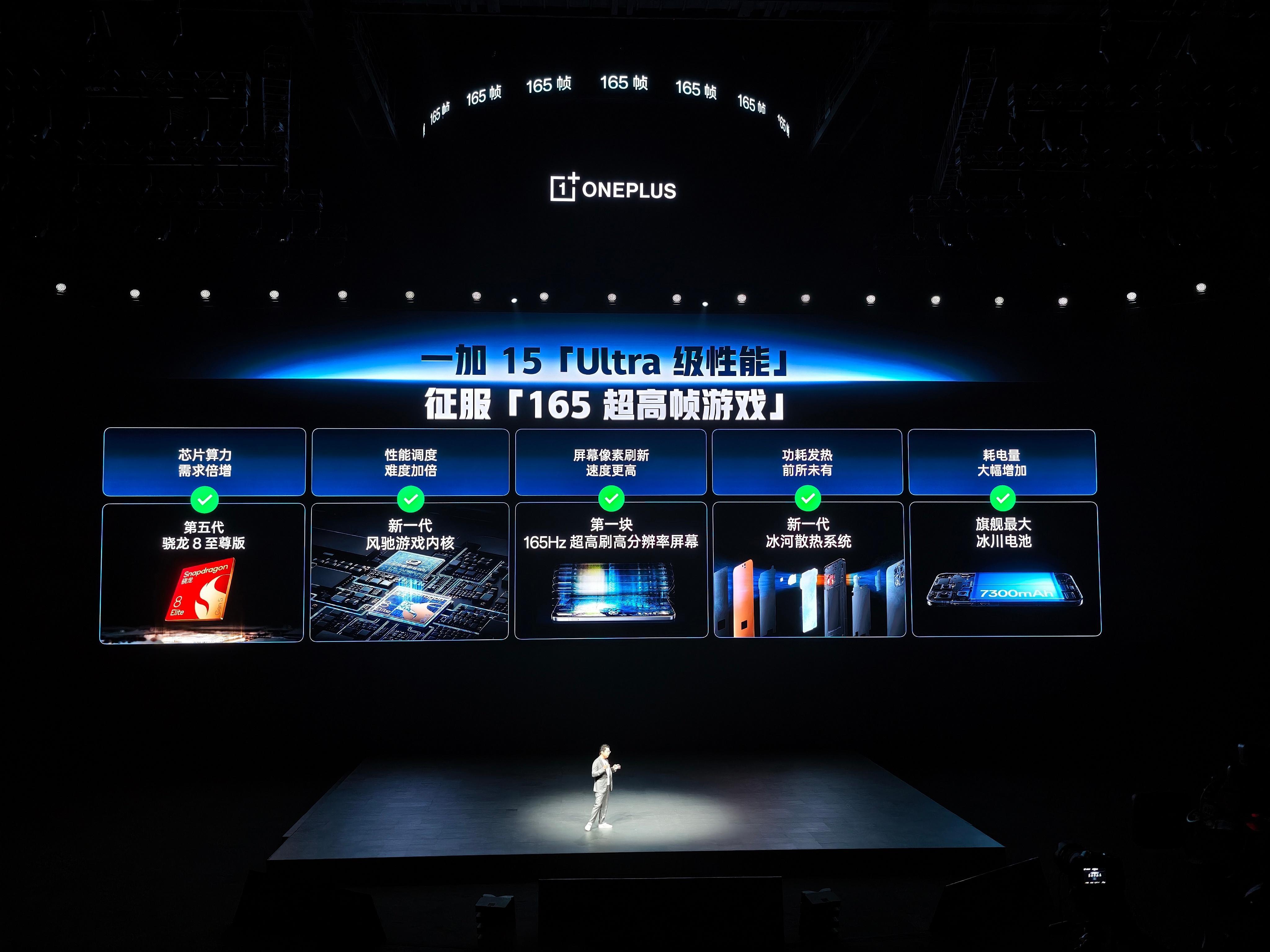 为了实现165Hz极速高刷,一加15搭载第五代骁龙8至尊版处理器搭配风驰游戏内核,性能更强,游戏帧率可以更稳。散热有冰河散热系统,续航有7300mAh冰川电池+120W 超级闪充+50W无线闪充,信号有电竞网络芯片G2,触控有灵犀触控芯片,游戏主机手柄同系同规格陀螺仪等等[并不简单]一加15和Ace6新品发布一加15