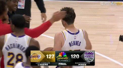 51+11+9!里夫斯收藏比赛用球,发带都被挤掉了。 比赛结束队友全拥了上来哈哈,威少也第一个上来祝贺他。 可惜东契奇没打,杨瀚森又有比赛,没看我湖的..... 这下詹姆斯尴尬了,球队2连胜,复出要成三当家了!