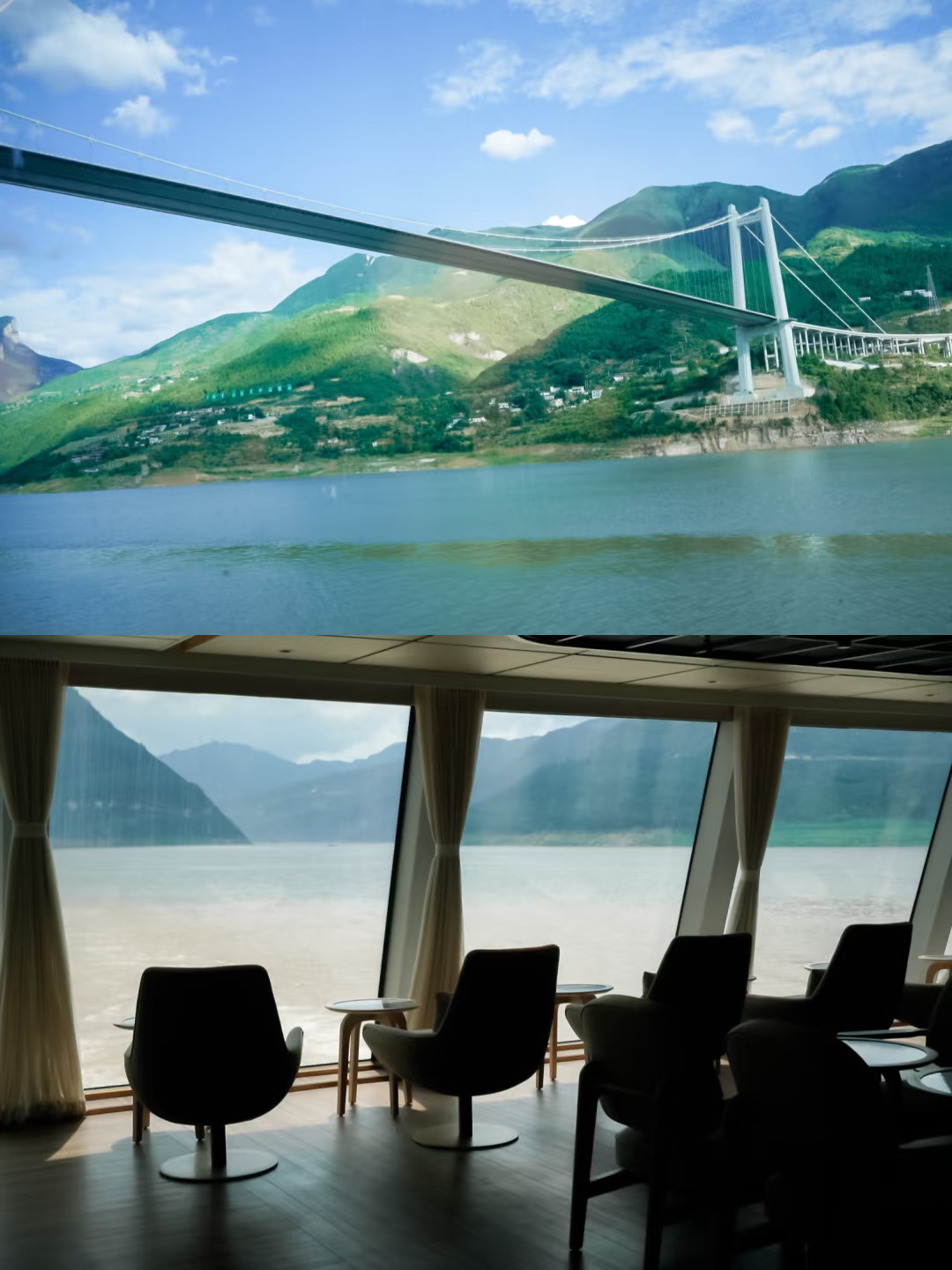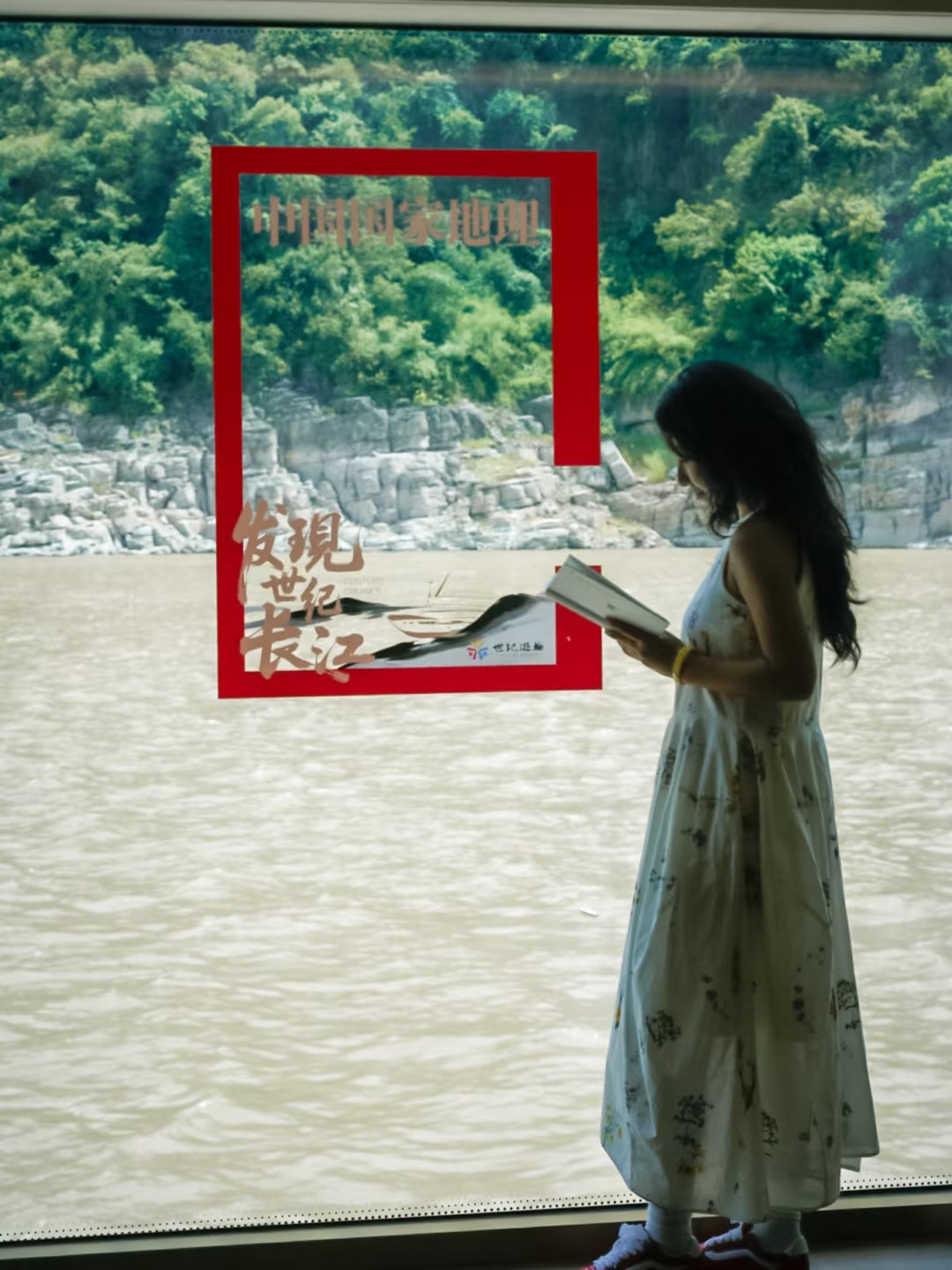 ✅二层有中国国家地理合作主题摄影展🗺️,展出了三峡珍稀地貌、人文纪实大片,边赏实景边看专业解读,超震撼! 🚢船上各处分布着中国国家地理杂志封面的经典红框,等着你去发现打卡,超出片哟~