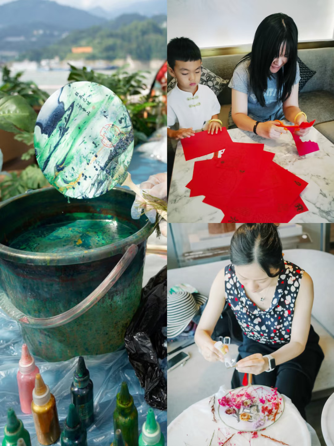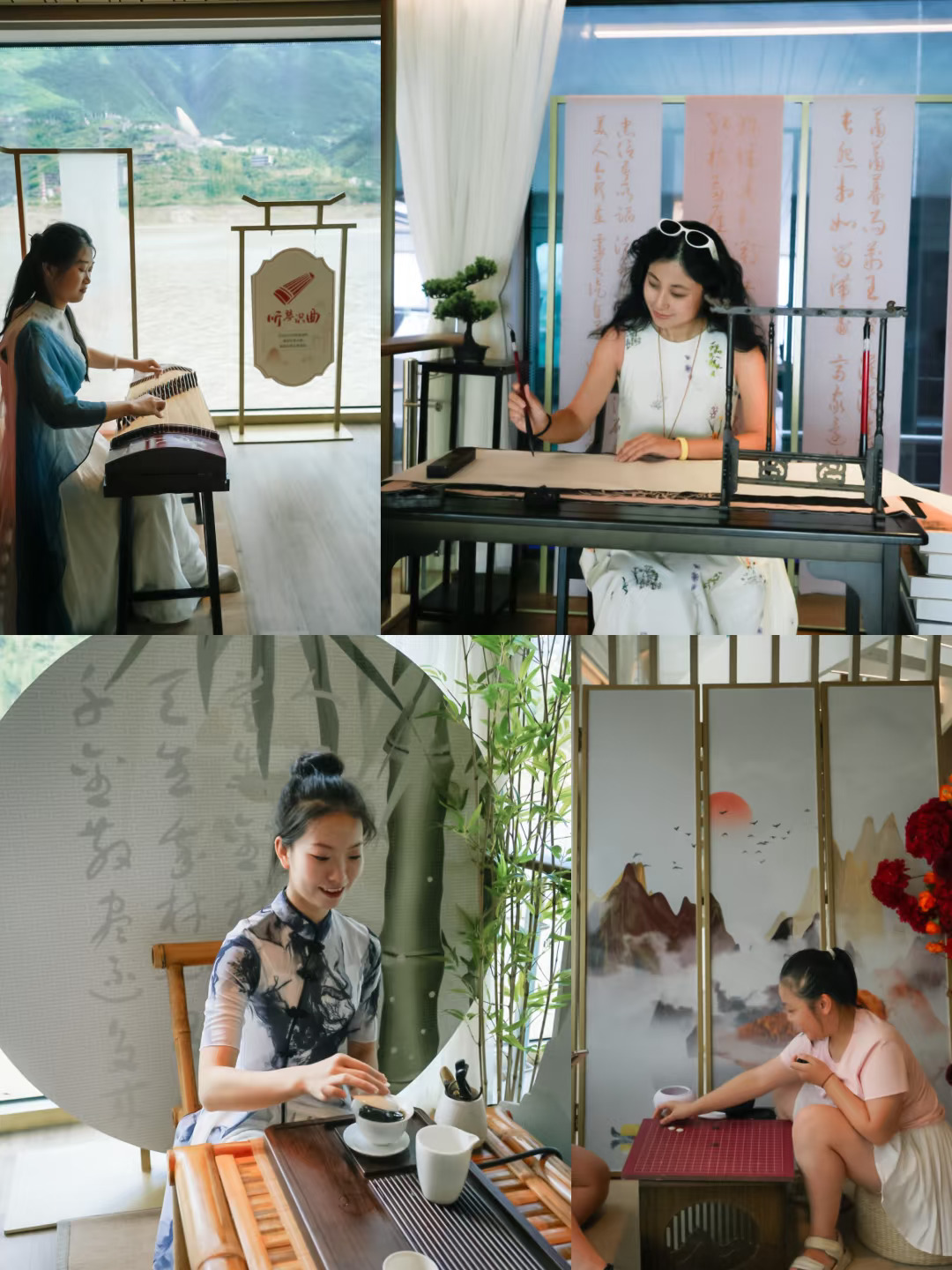 ✅船上有很多国风文化体验活动,比如弹琴🎹、对弈♟️、写书法✍️,茶艺🍵等,还有很多diy的活动,我做了干花团扇(拍照神器),还有漆扇、做香囊、剪纸也超有趣~