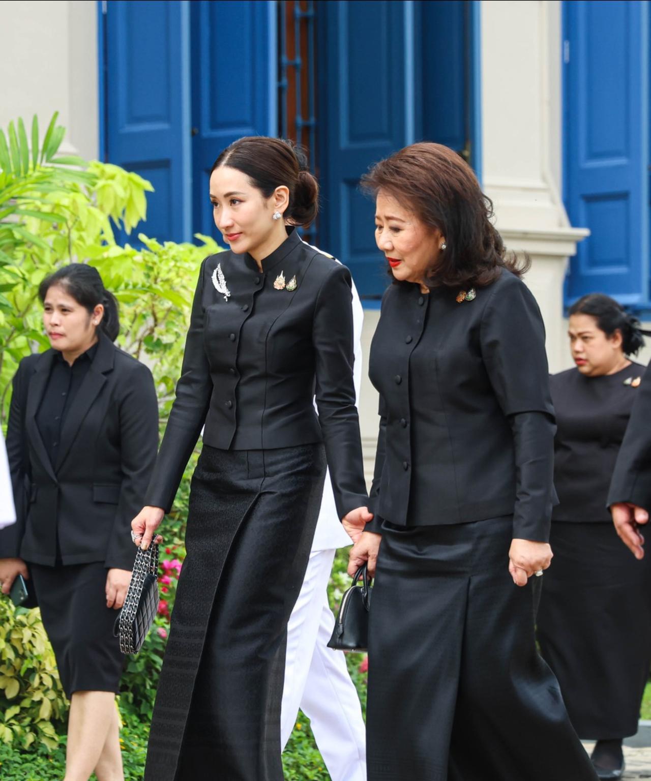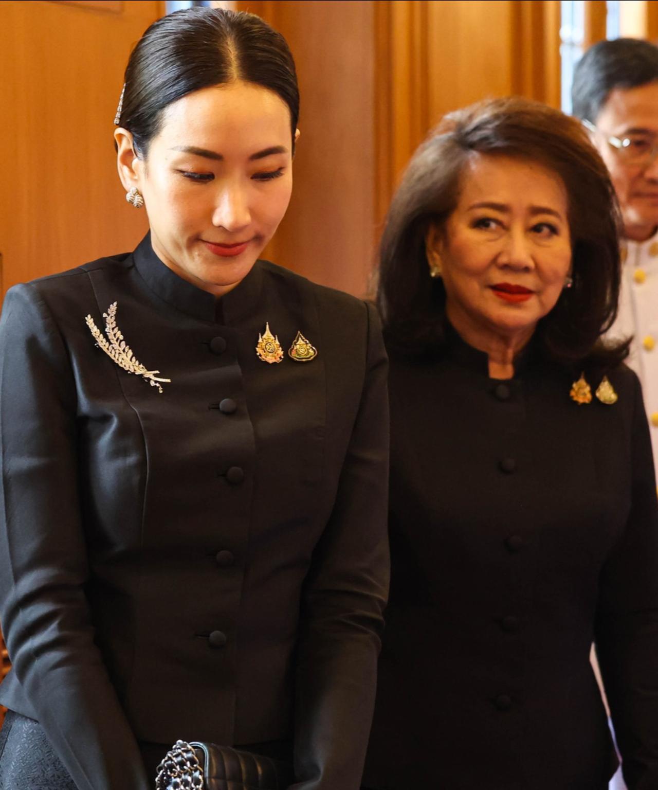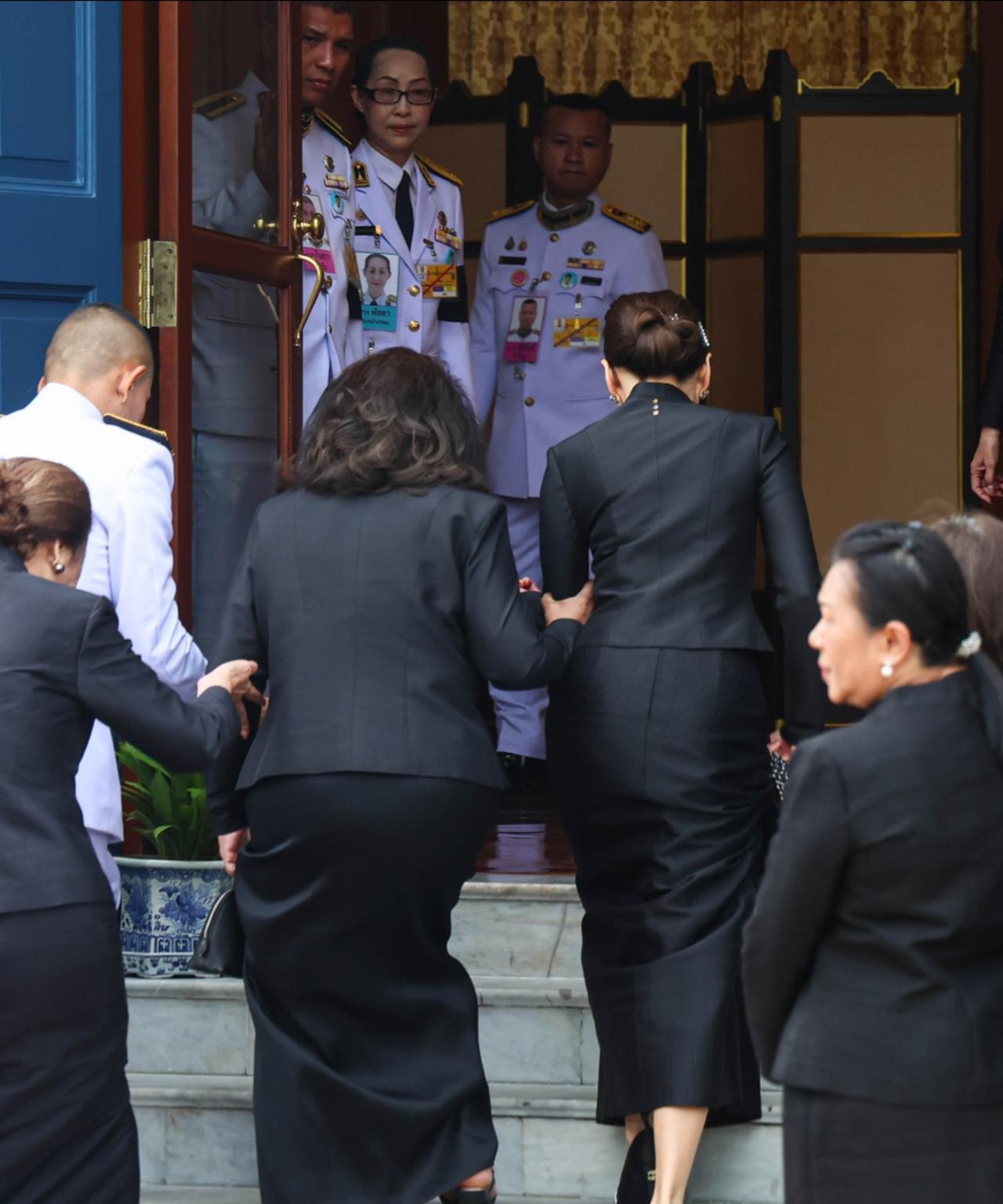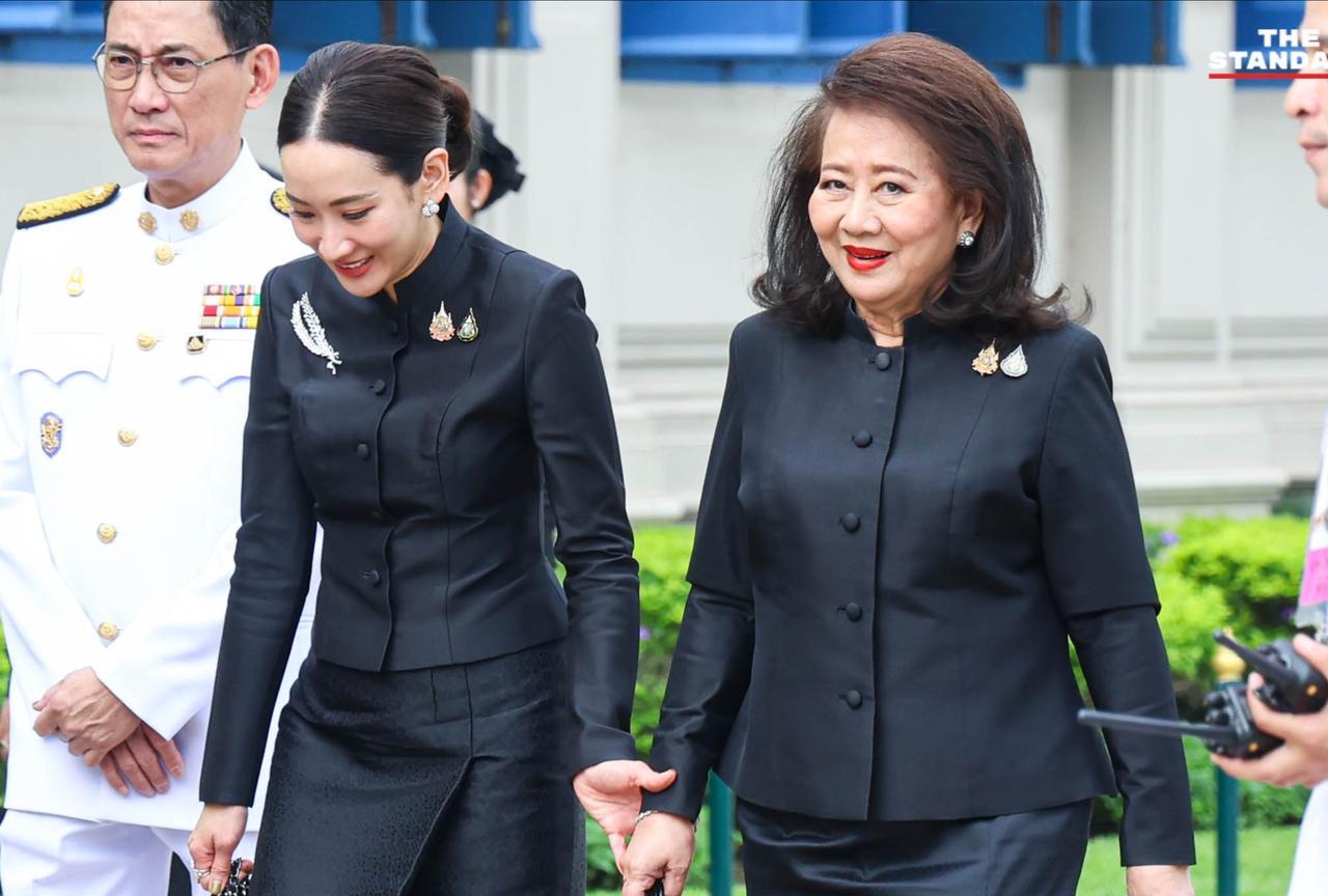 萍通塔带着母亲,一同悼念诗丽吉太后 10月27日,泰国王室事务局首次开放大皇宫内萨哈泰·萨玛空亭后,萍通塔与母亲前来吊唁并签署吊唁簿。母女俩皆身着黑丧服,神情庄重,对着太后照片缓缓行屈膝礼,以表哀思。