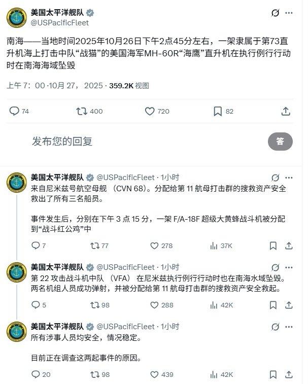 南海神仙们都看不下去了呀,26日,美国尼米兹航母两架飞机在南海坠海! 26