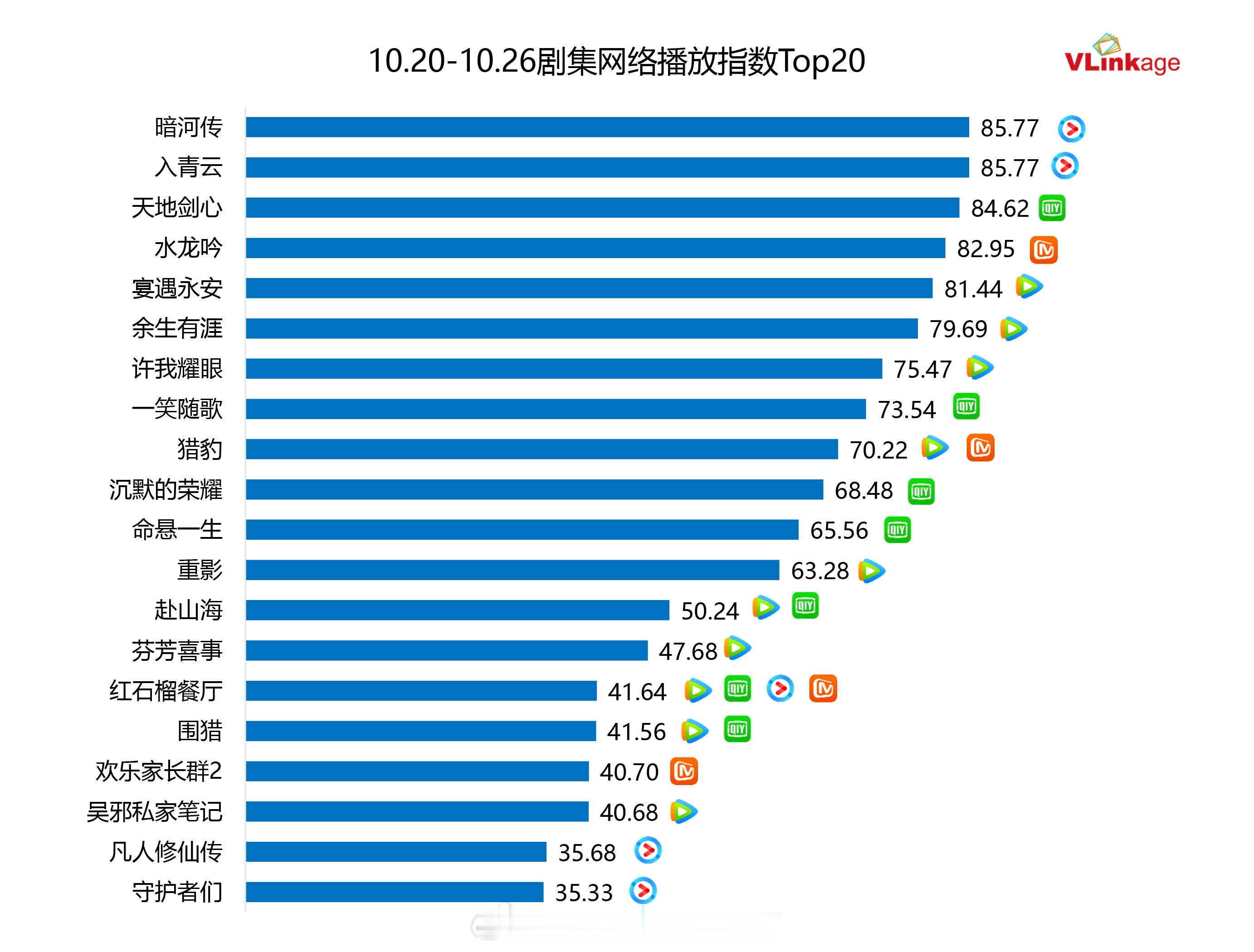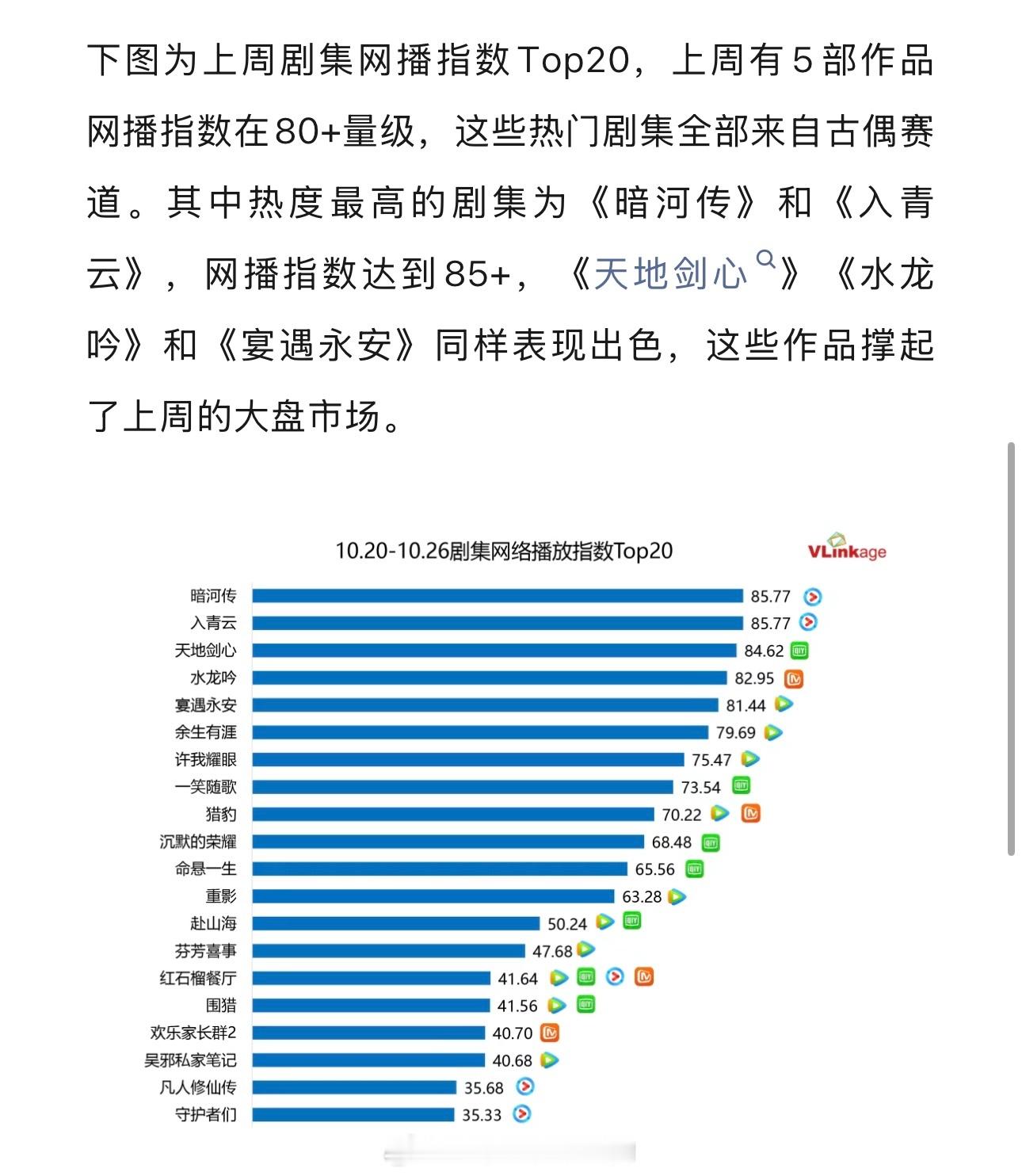 V榜:上周5部古偶网播指数破80,《暗河传》表现最佳