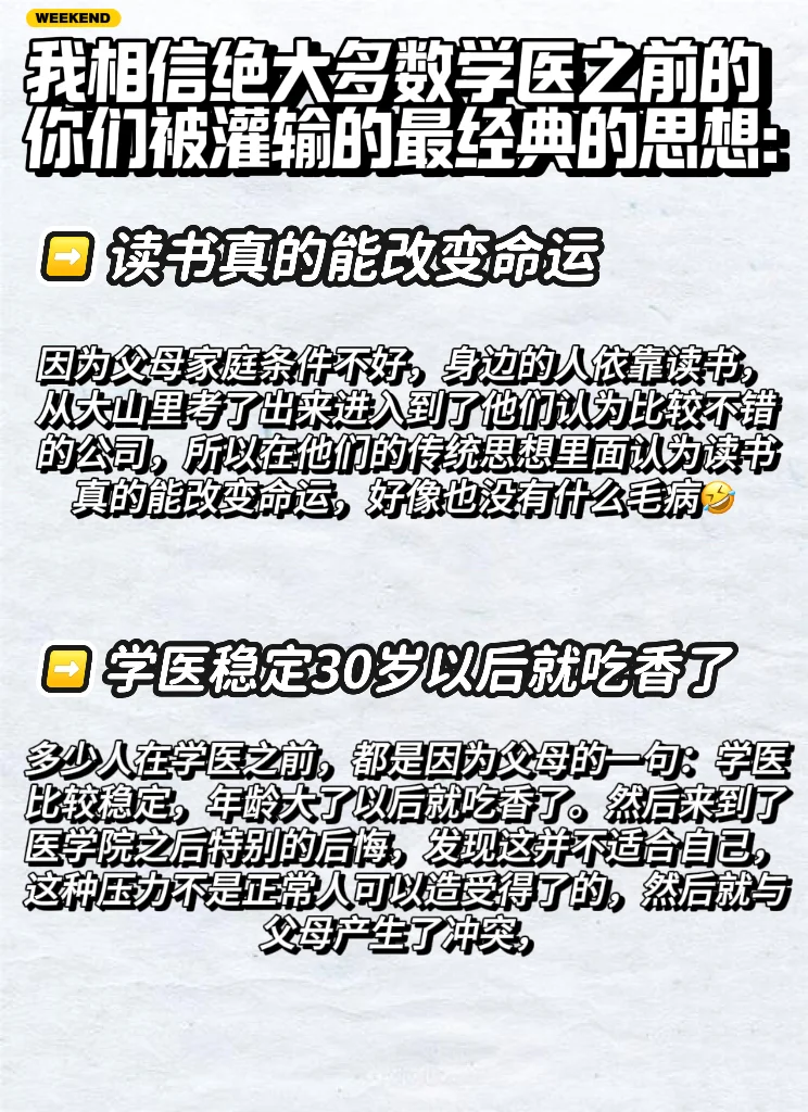 最直接的反面证据就是:每年有90%的医学生都转专业了