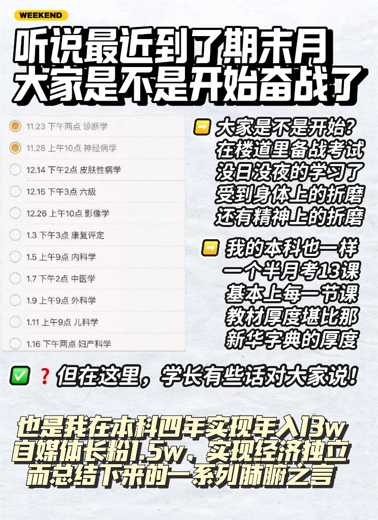 🌟期末月了,多少医学生还在备战期末考试,饱受疲惫被学习精神折磨,多少普通家庭孩子想拿奖学金,没日没夜的不分学期的学习!