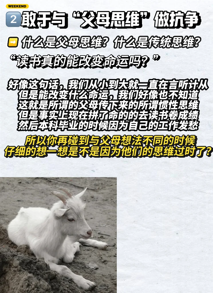 当你去做一件事你发现与你父母的意见冲突的时候你就要仔细的去,想一想是他们的观念传统了吗?