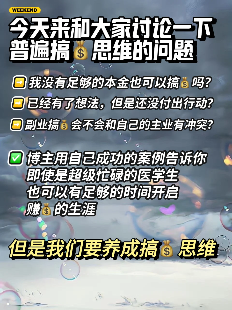 其实所谓的想让大家养成搞💰思维,主要的原因是如果你单一的选择学医这一条道路进医院,即使你遇到了困难,副业也可以给你提供金钱支持,在满是焦虑压力的环境下,帮助你摆脱困境。