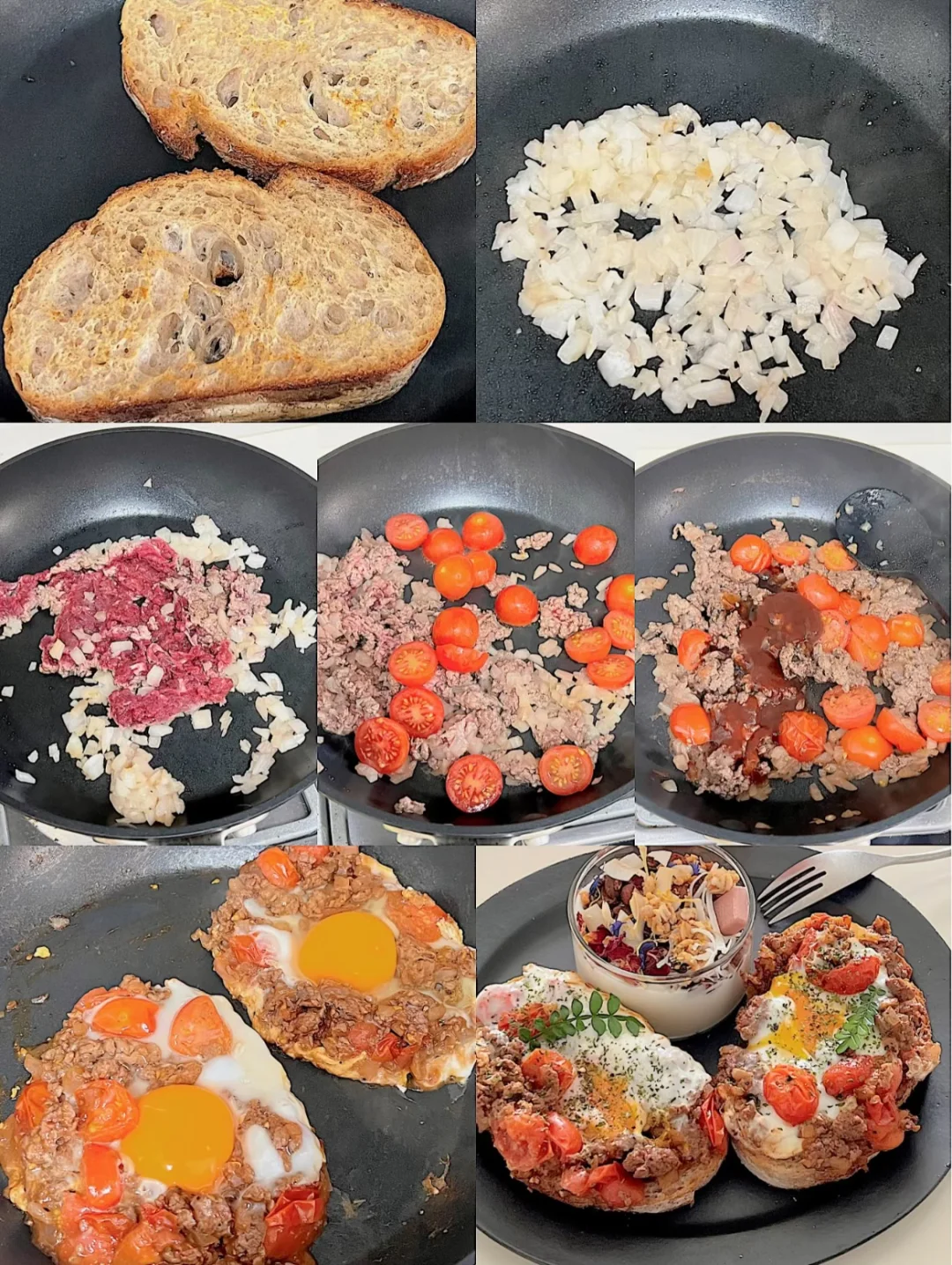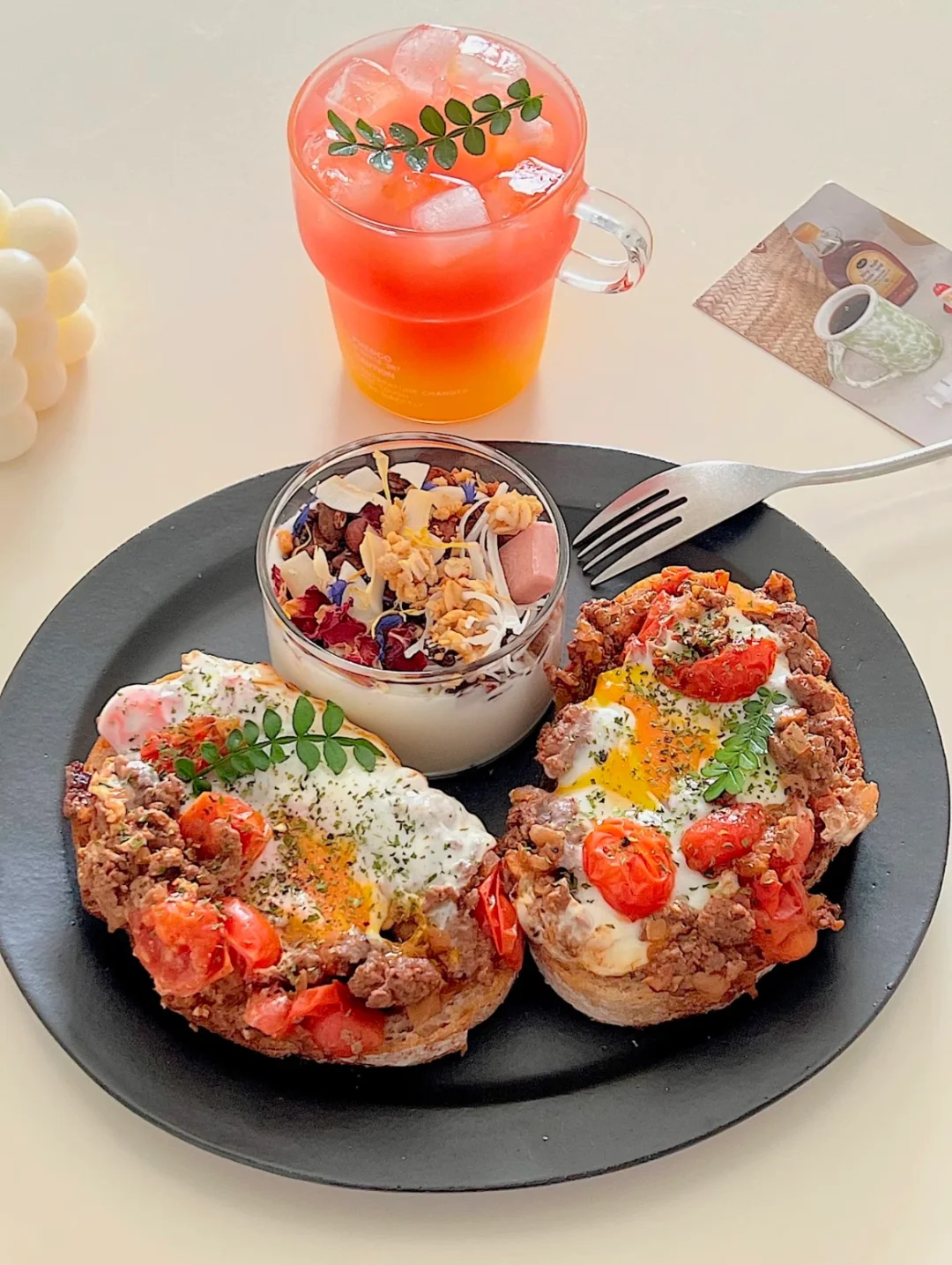 一人食brunch|牛虾仁滑蛋盖饭💛柠檬茶🍋🟩