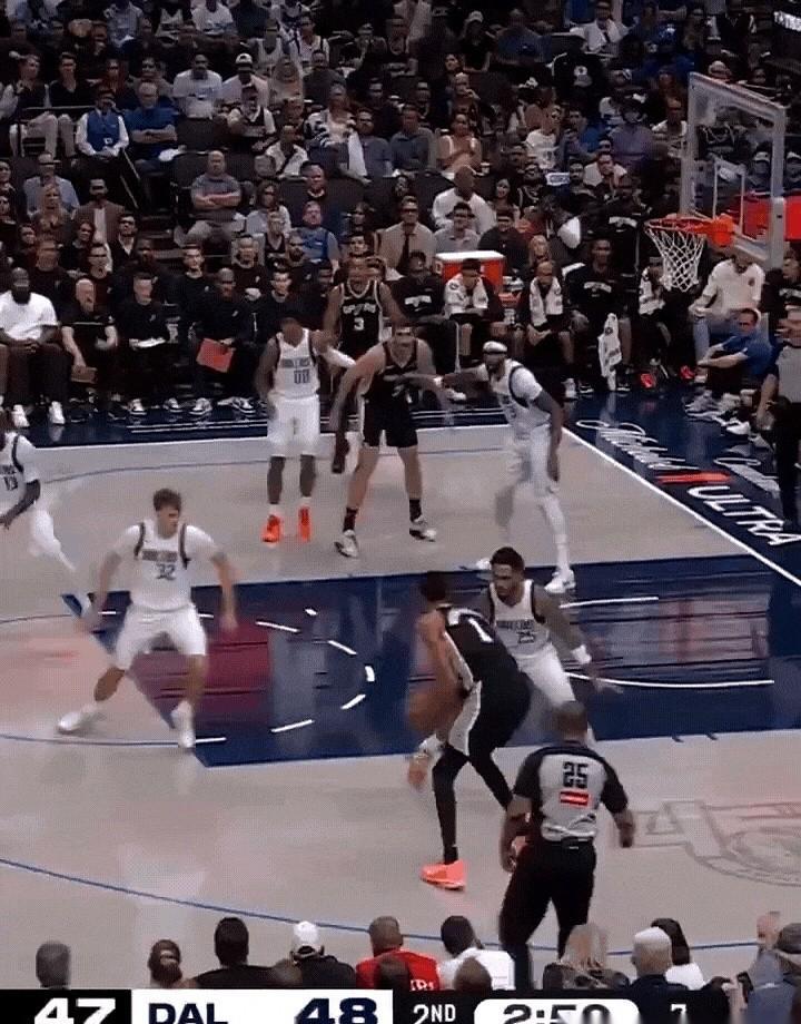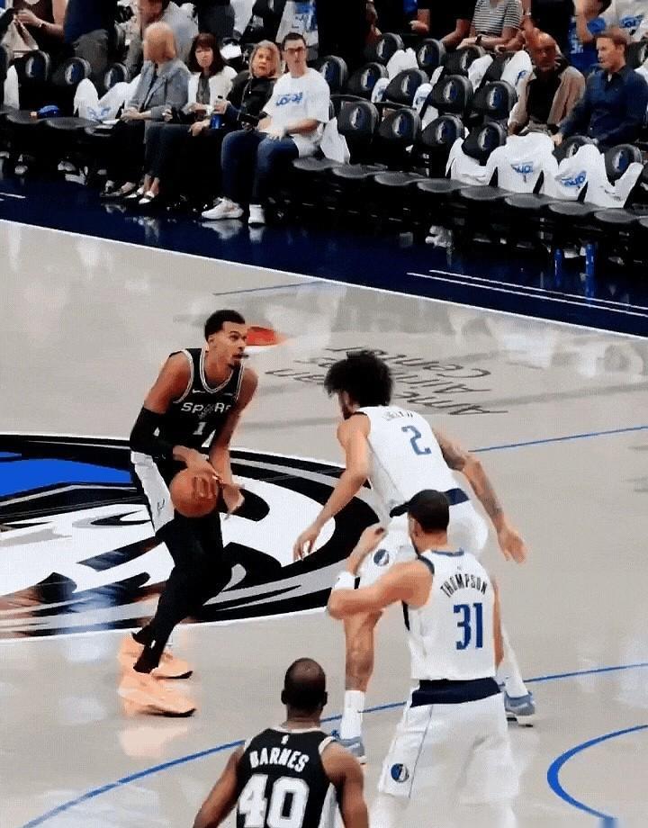 他两米二四,能胯下运球,能飞天大风车。 浓眉贴身防他,愣是不知道该封盖还是放他突破。 新秀前20场,20+10+3,NBA头一份。 没人这么打过中锋——不是篮下吃饼,是后场发起,三分线外一步就拔。 他一转身,防守人像看慢动作回放。 教练波波维奇没喊战术,只说:“别拦他,跟着他走。 ” 现在联盟的防守手册,正在一页页重写。 他不是天才,是把篮球规则撕了,自己重画了一套。 小个子能晃倒大个,大个子也能晃倒小个。 这世界,终于有人把身高当武器,也当舞步。