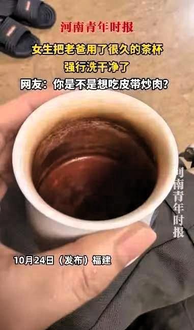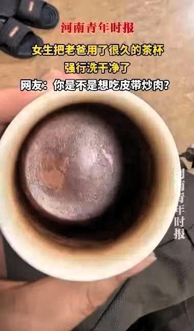 闯出大祸了!”近日,福建,一姑娘看着老爸用了十几年的白瓷茶杯,里面积满了厚厚的黄黑茶垢,指甲一抠就掉渣,越看越膈应:“这哪是喝茶,分明是喝细菌啊!” 二话不说找刷子、接热水,费了九牛二虎之力,硬是把茶杯刷得洁白如新,还原了本来模样,满心欢喜等着老爸夸她懂事,结果把视频发上网,网友全劝她“连夜扛着棉被跑路”,还调侃“姑娘这是闯大祸了”! 原来老一辈爱茶人都有个“硬核执念”:茶杯越用越不洗,才叫“养杯”!那层脏兮兮的茶垢在他们眼里,根本不是脏东西,而是岁月沉淀的“宝贝”——是十几年喝茶攒下的茶香,是喝茶人的“身份象征”,甚至倒杯白开水都能飘出淡淡的茶味。 老爸用这杯子喝了十几年,那层包浆是他和茶的情感寄托,是日复一日喝出来的仪式感,结果被闺女一键“恢复出厂设置”,多年的“养杯成果”全清零,换谁能不心疼? 其实这事儿真没谁对谁错!姑娘讲科学、重卫生,出发点全是为老爸健康着想;老爸珍视老物件、看重情感仪式感,也完全能理解。说白了就是两代人的生活观念撞了满怀——年轻人过日子认“干净健康”,长辈们则偏爱着“岁月留下的味道”,谁都没恶意,却差点闹得不愉快。 但孝顺从来不是硬邦邦的“我为你好”,而是懂得找个平衡点。想兼顾卫生和情感其实超简单:用小苏打或柠檬水泡一泡,温和清洁表面浮垢,留下一层薄薄的茶渍,既不破坏老爸的“养杯仪式”,又能减少细菌滋生,这不比硬刷干净更贴心? 你家有没有这种“好心办错事”的两代人趣事?