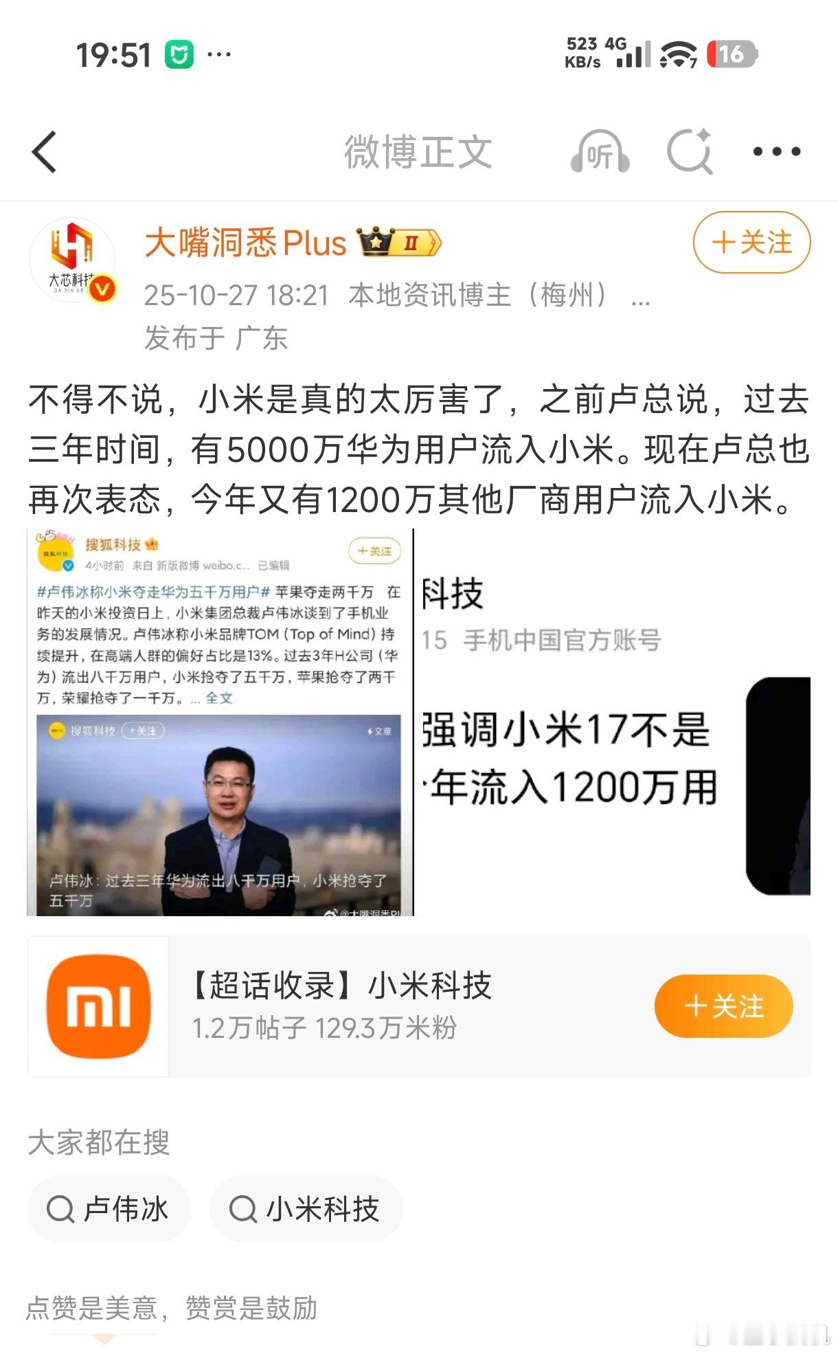 你看吧,不提小米根本就没法发文…大熊之前说kml被禁言安静了,结果有个群体还在反复横跳…还是那句话,米系可以不提任何无关小米的友商,你们敢不提小米吗?真是倒反天罡闹麻了[允悲][允悲]