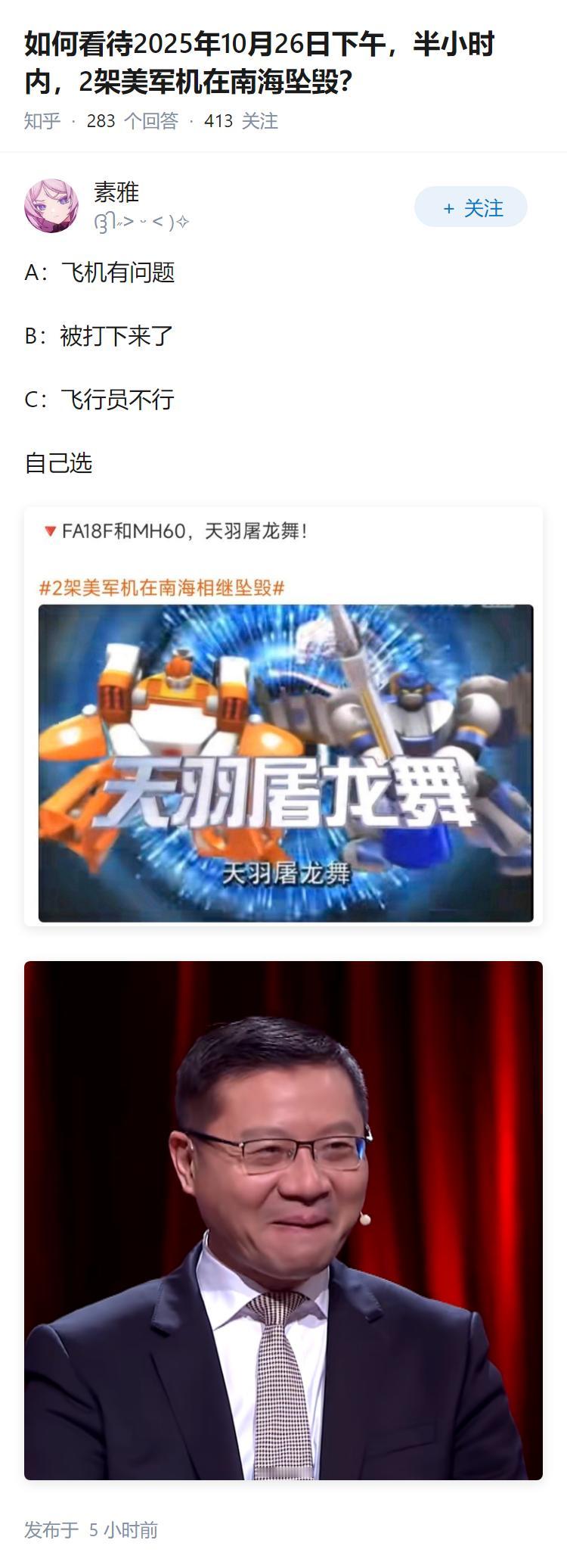 如何看待2025年10月26日下午,半小时内,2架美军机在南海坠毁?