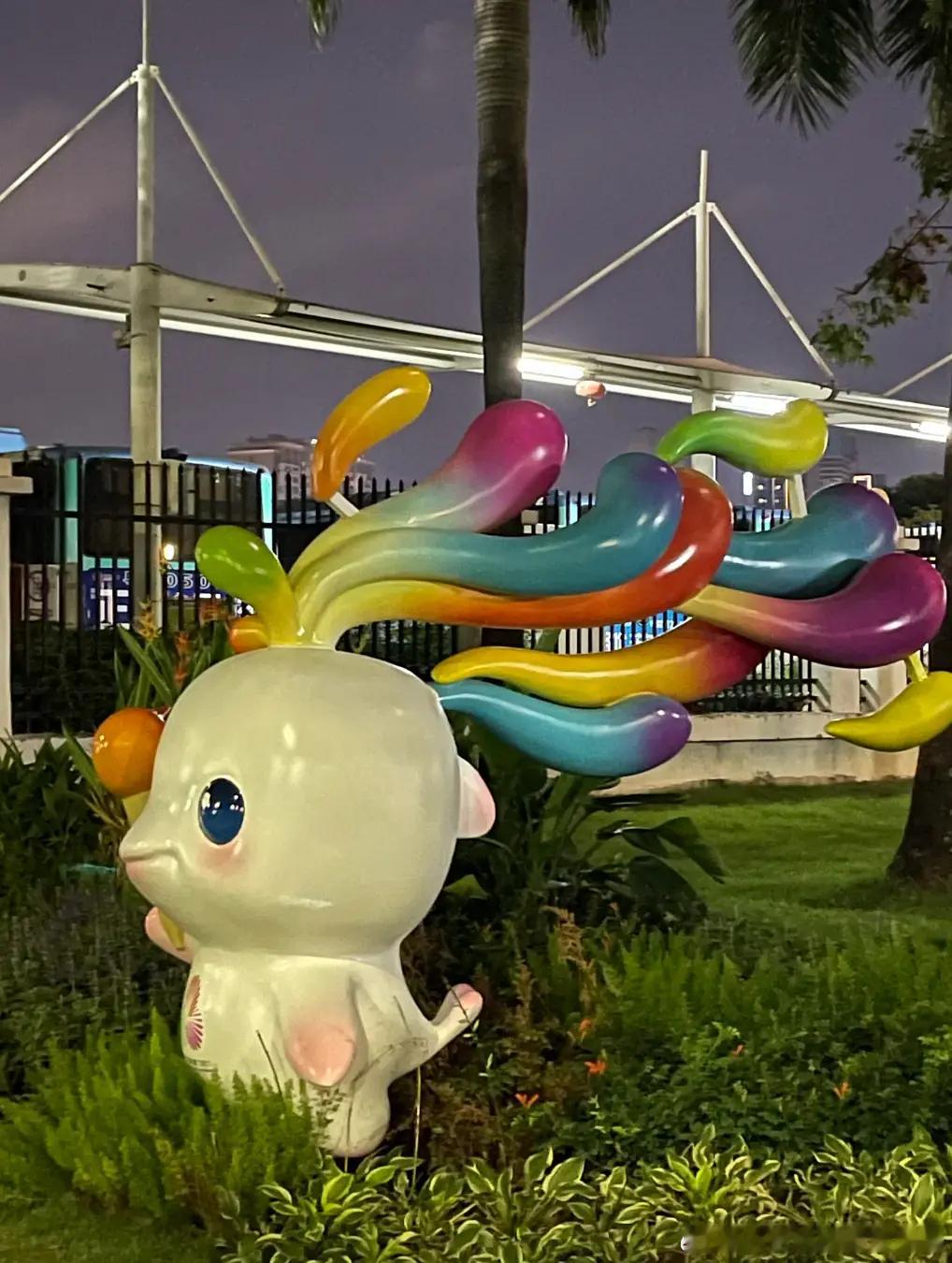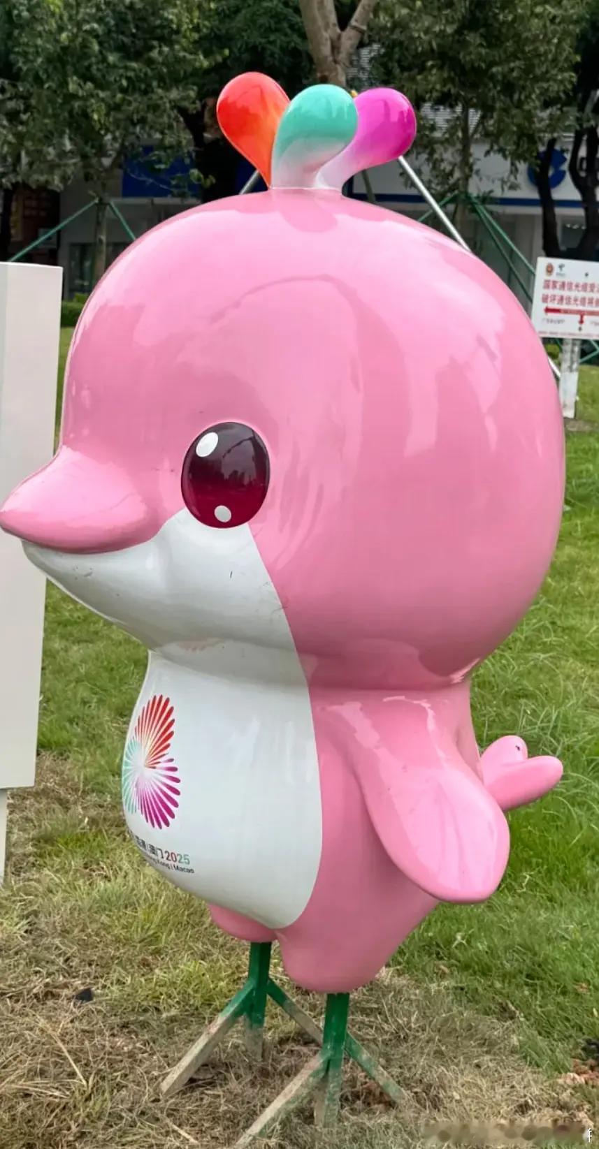 这次全运会的吉祥物是两只海豚,不过可能是为了户外立住方便,就给雕像设计了脚,就成了小鸡了哈哈哈哈哈哈哈(还挺可爱的