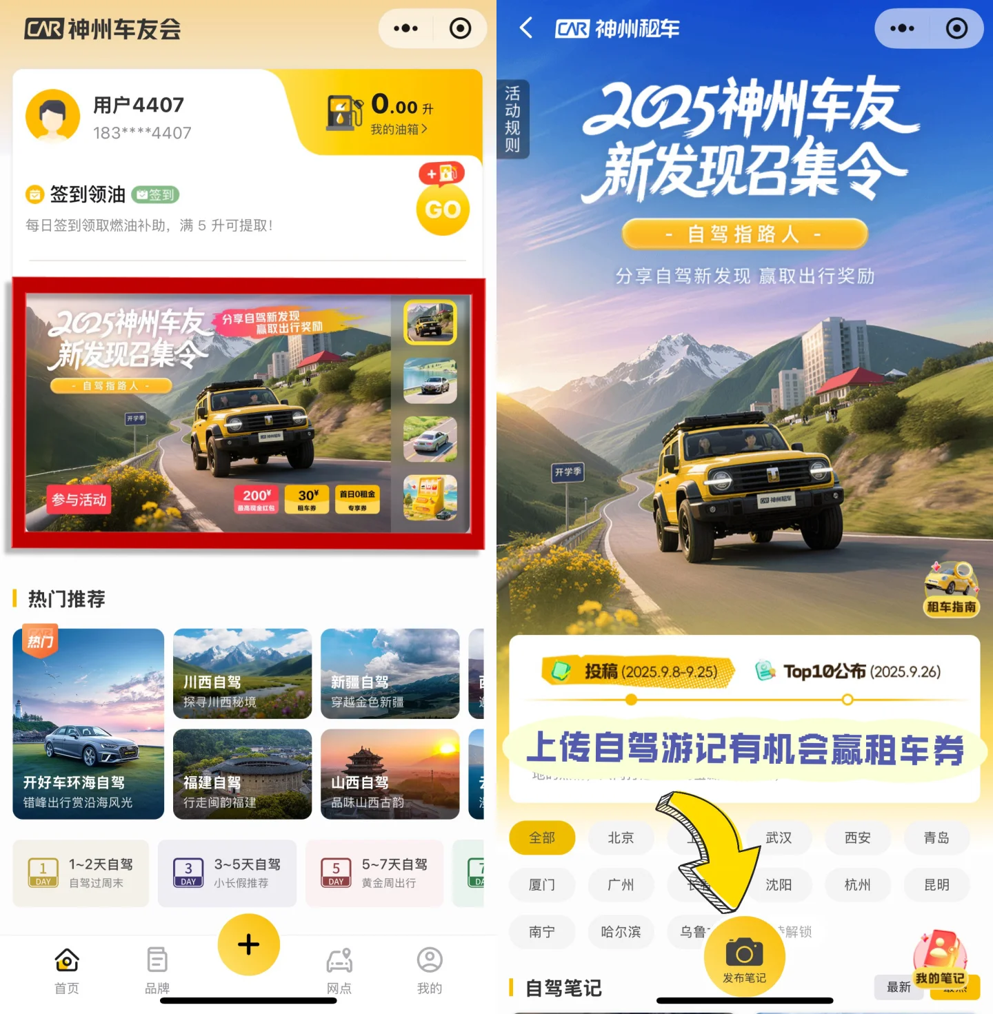 国庆期间车辆紧张!我提前在【神州租车】APP预订,可选择的车型非常多,取车也超方便。工作人员还贴心提供了高原行车注意事项~大家租车时建议选全险,高原路况复杂图个安心。最近神州租车正在举办【2025车友新发现召集令】活动,上传自驾游记有机会赢租车券,小伙伴们可以试试哦!