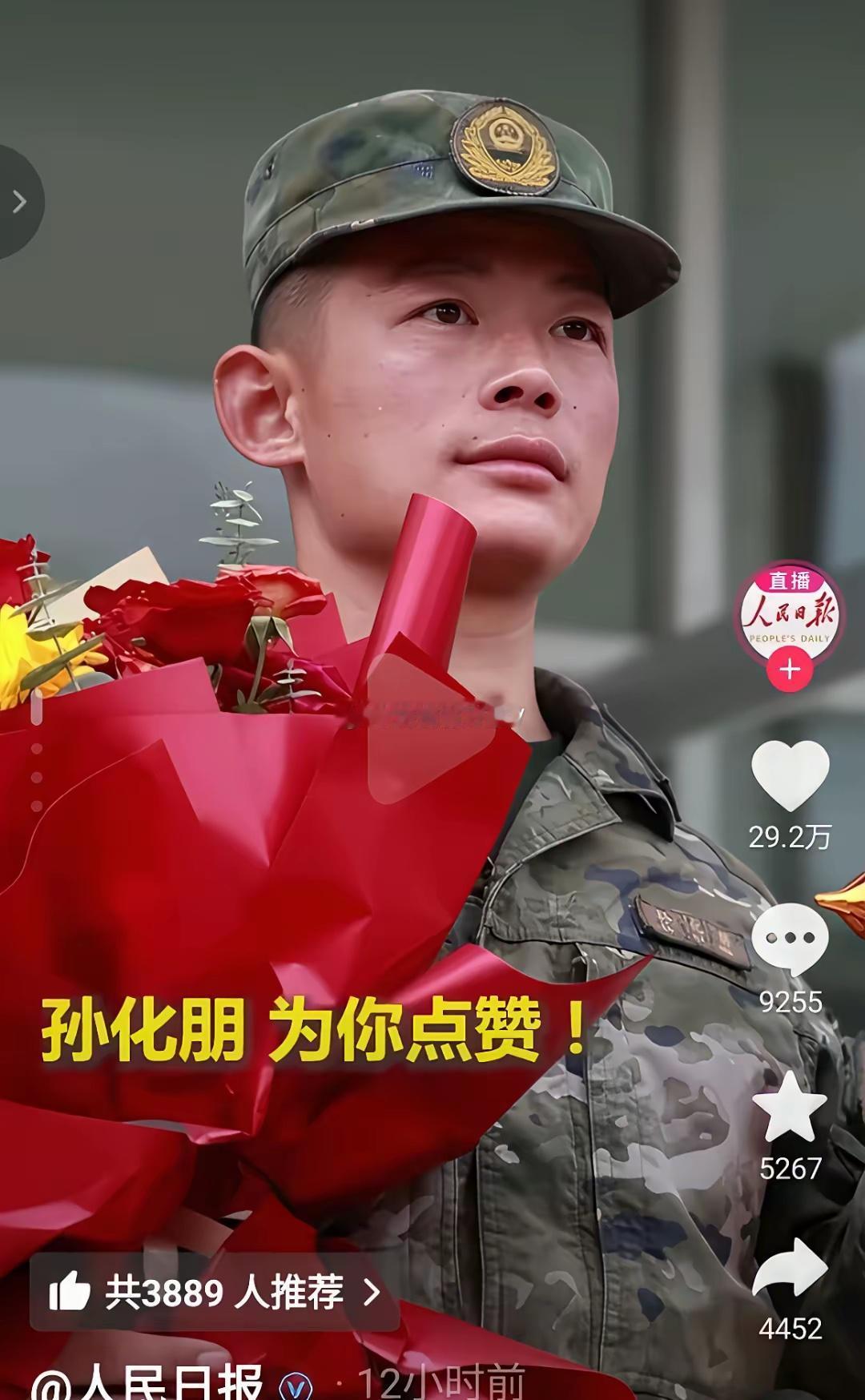 勇敢的男子被多媒体平台表扬了,有潮新闻、人民日报、中国青年报和央视新闻等,看到人民需要他的时候,义无反顾去救人,完全不考虑自己的危险还有后果,这就是我们的军人 这天小伙休假走在公园里,看到有个女子在公园散步,然后不小心掉到水里,这一幕刚好被路过休假的孙化朋见状,然后他吼了两声,就听见一声“扑通”水声 孙化朋也是赶紧脱掉衣服,然后也是“扑通”一下跳下去救人,他快速找到女子的位置,然后将她救起,还好女子没啥大碍 休假后孙化朋回到单位,女子做了旌旗到单位感谢小伙,是小伙救了她,如今她才安然无恙站在这里,也感谢勇敢的小伙,哪里需要你在哪里,致敬我们伟大的军人,为你点赞👍