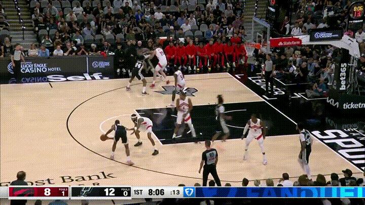 马刺超级巨星文班亚马真是让人大开眼界!在今天马刺主场迎战猛龙的比赛中,当时比赛进行到了第一节的八分多钟,文班亚马在一次进攻回合中接队友巴恩斯的传球持球强杀篮下,完成了一记让人叹为观止的空中转体上篮,带领球队继续扩大了领先优势。 文班亚马真的给人带来了无数的惊喜,他让人们看到了很多未知的东西。
