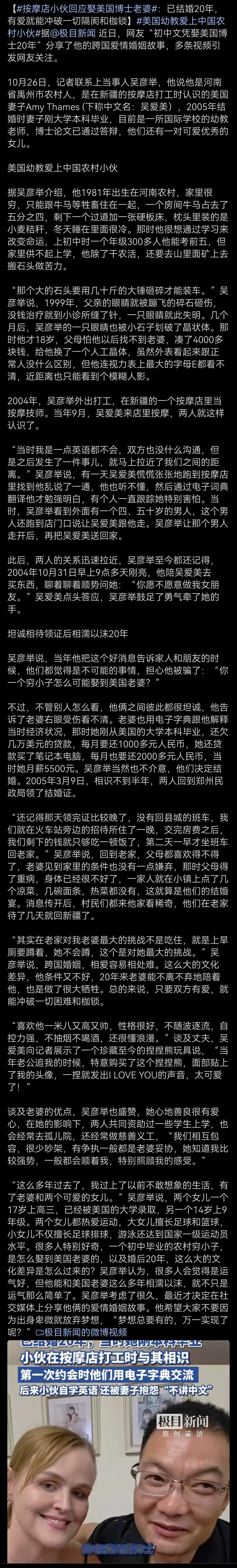美国女博士,爱上中国农村初中毕业小伙,两人结婚已二十年。[赞]