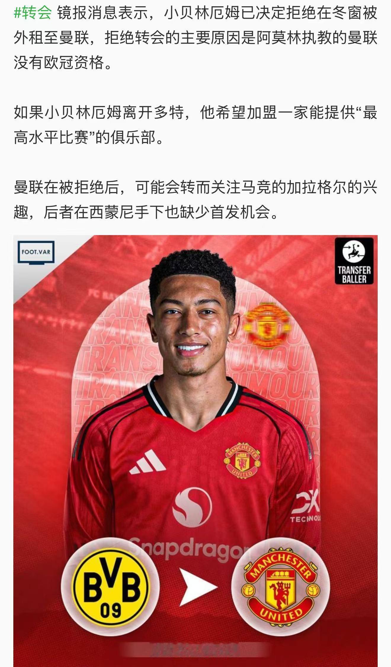 还好拒绝了,小贝林目前展现的水平完全配不上在豪门踢球,纯蹭他哥的边角料。现在是曼联复兴的关键时期,可不能再去刮水货彩票。