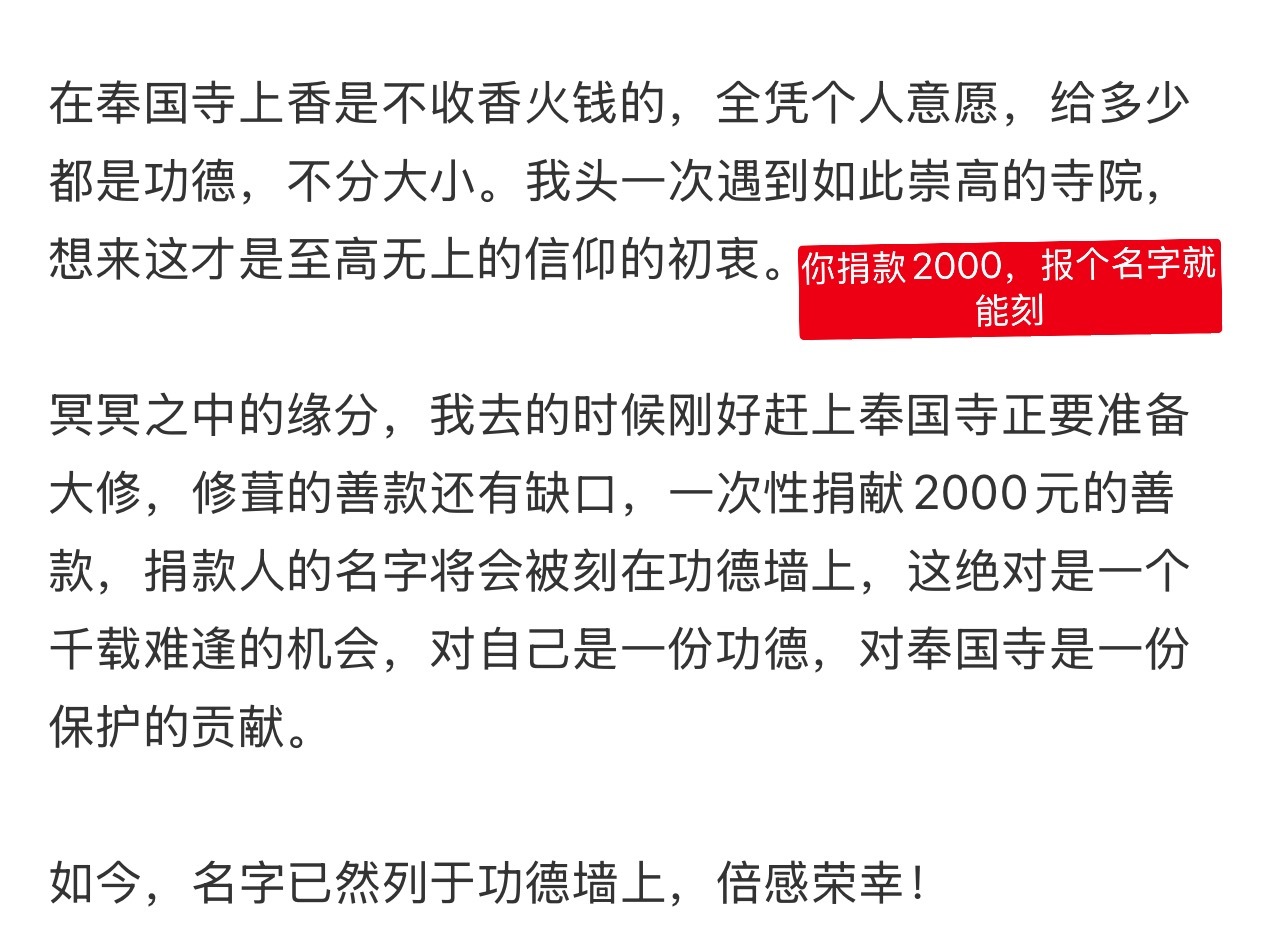 奉国寺功德墙上的双人名是cp粉在很多年前寺庙修缮的时候,捐款者用了他们的名义,并非本人的意愿!也非官方的行为。