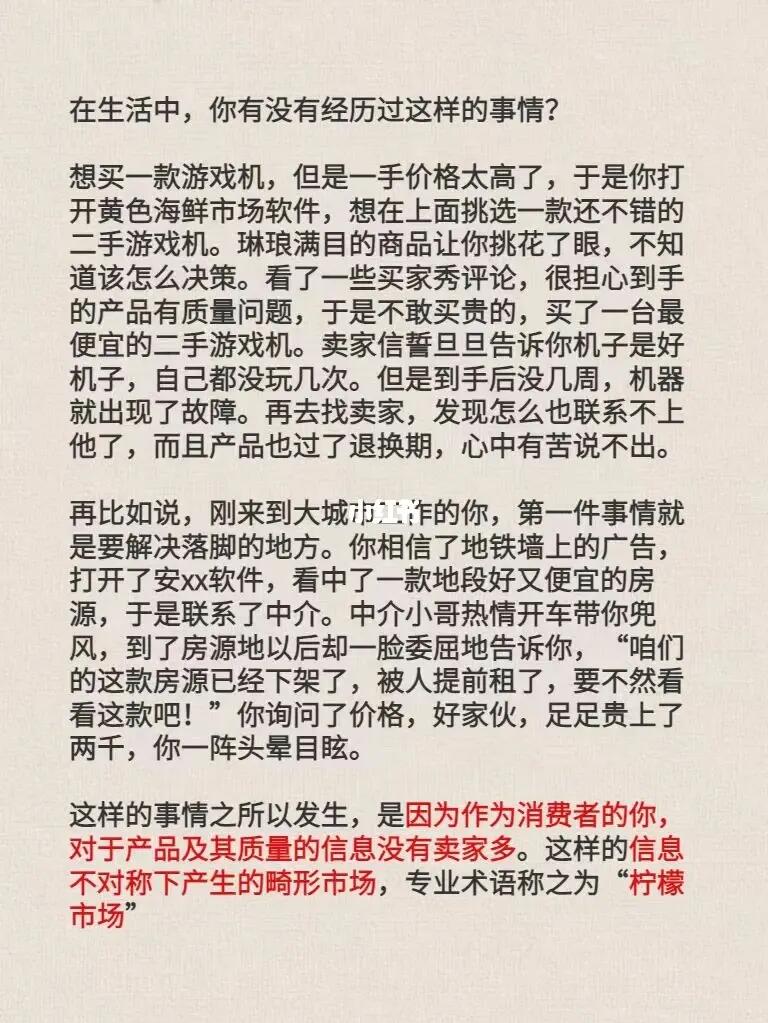 财经小常识第38期:柠檬市场