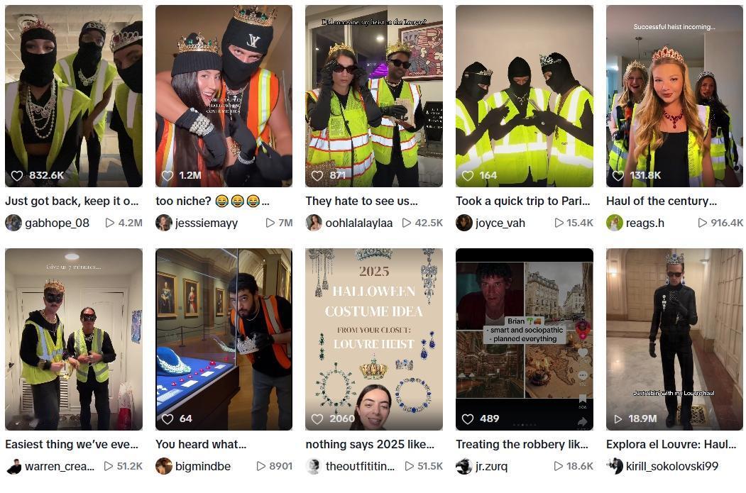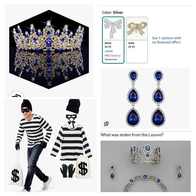 国外网友万圣节造型紧跟时事,卢浮宫劫匪是今年大热门。[大笑][捂脸] 之前视频里显示,两名从卢浮宫二楼逃跑的窃贼,穿的是全黑衣物加黄绿色安全背心,导致这套搭配直接成了爆款,各种劫匪同款单品都卖疯了。部分商家甚至还上架了一批欧仁妮皇后珍珠皇冠的仿制品。 而收到货的国外网友,已经开始拍视频分享“劫匪装扮” 了。缺德又好笑啊。