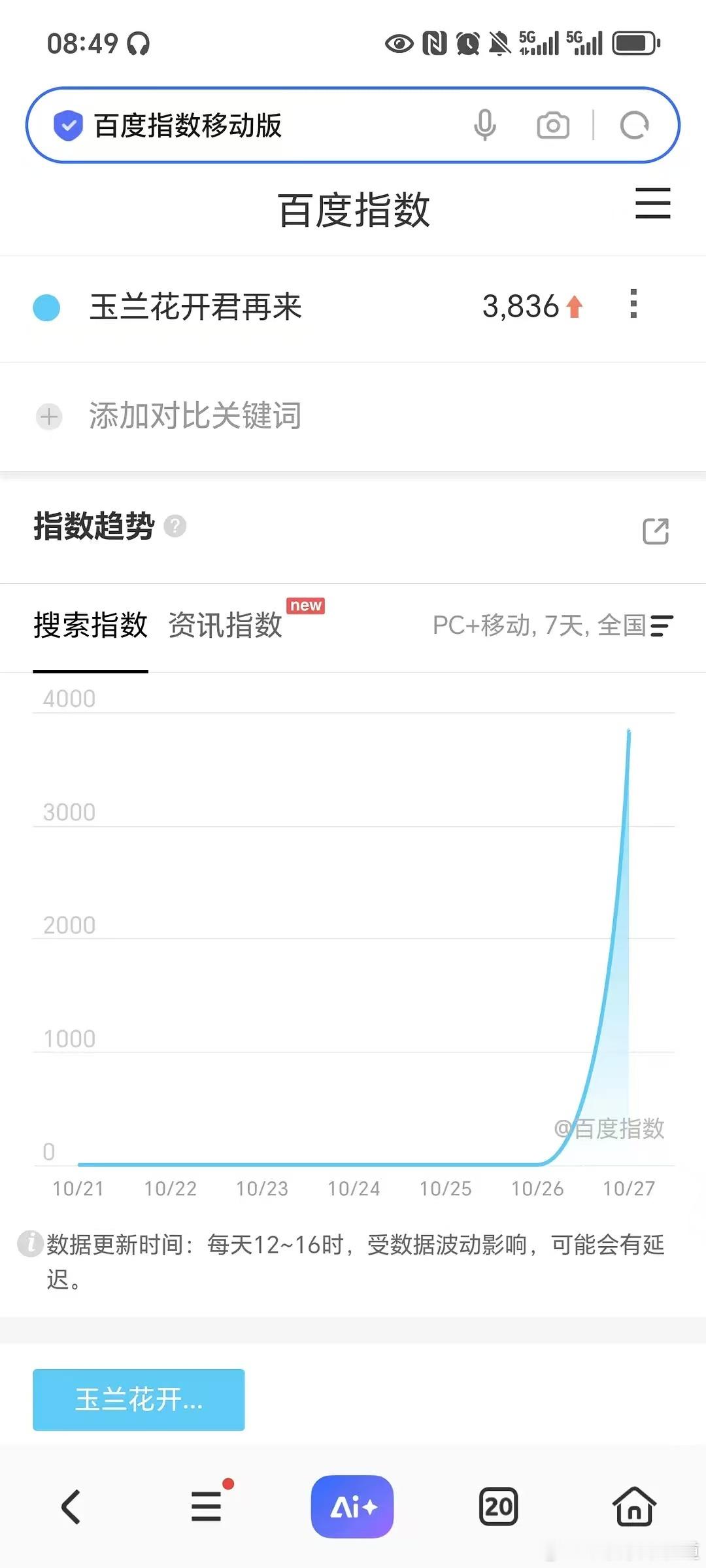 昨天腾讯视界大会各剧的百指,剑来关注度真高,玉兰花开君再来和风禾尽起张居正之前信息少到没有被收录进词库,昨天直接暴涨。