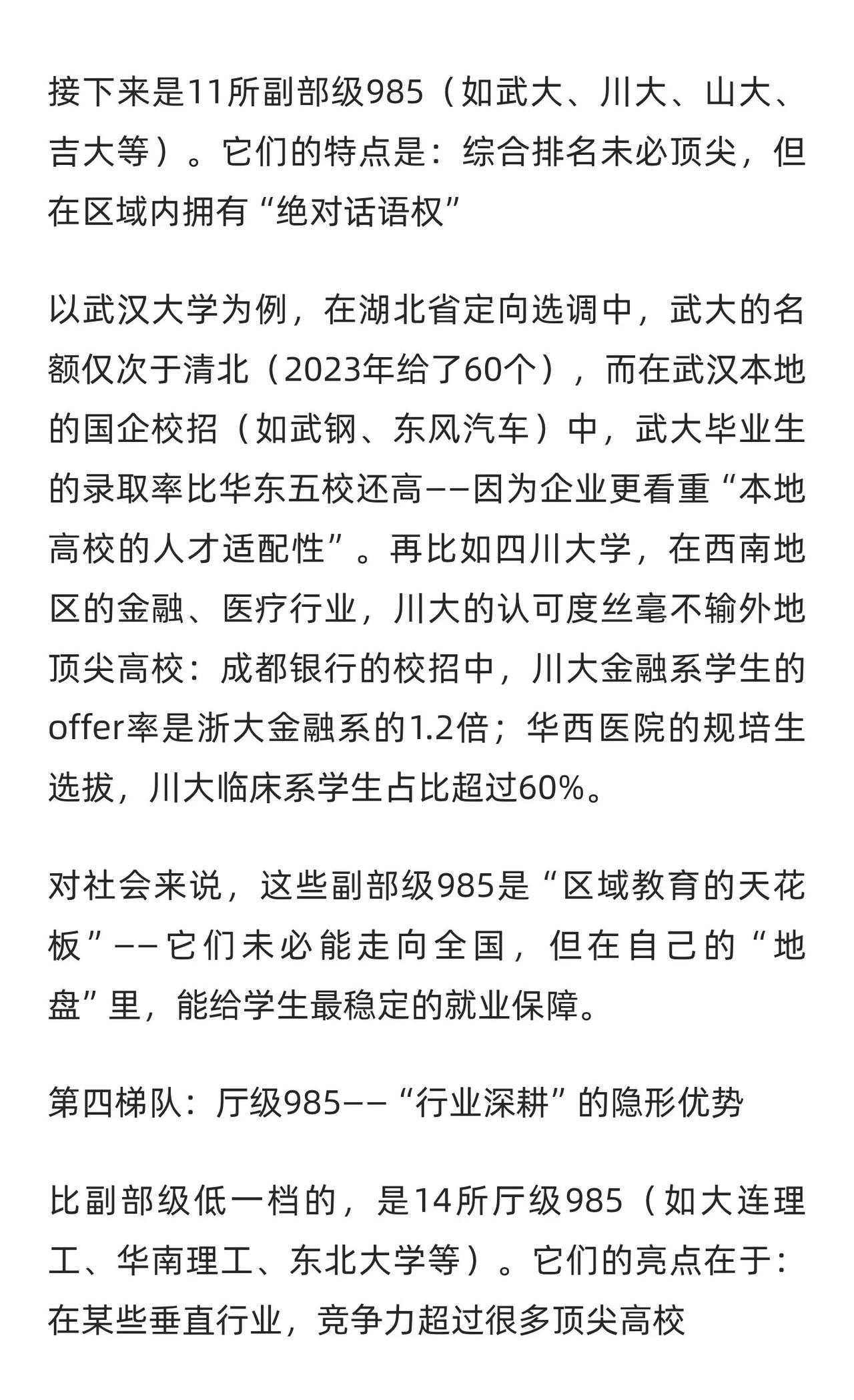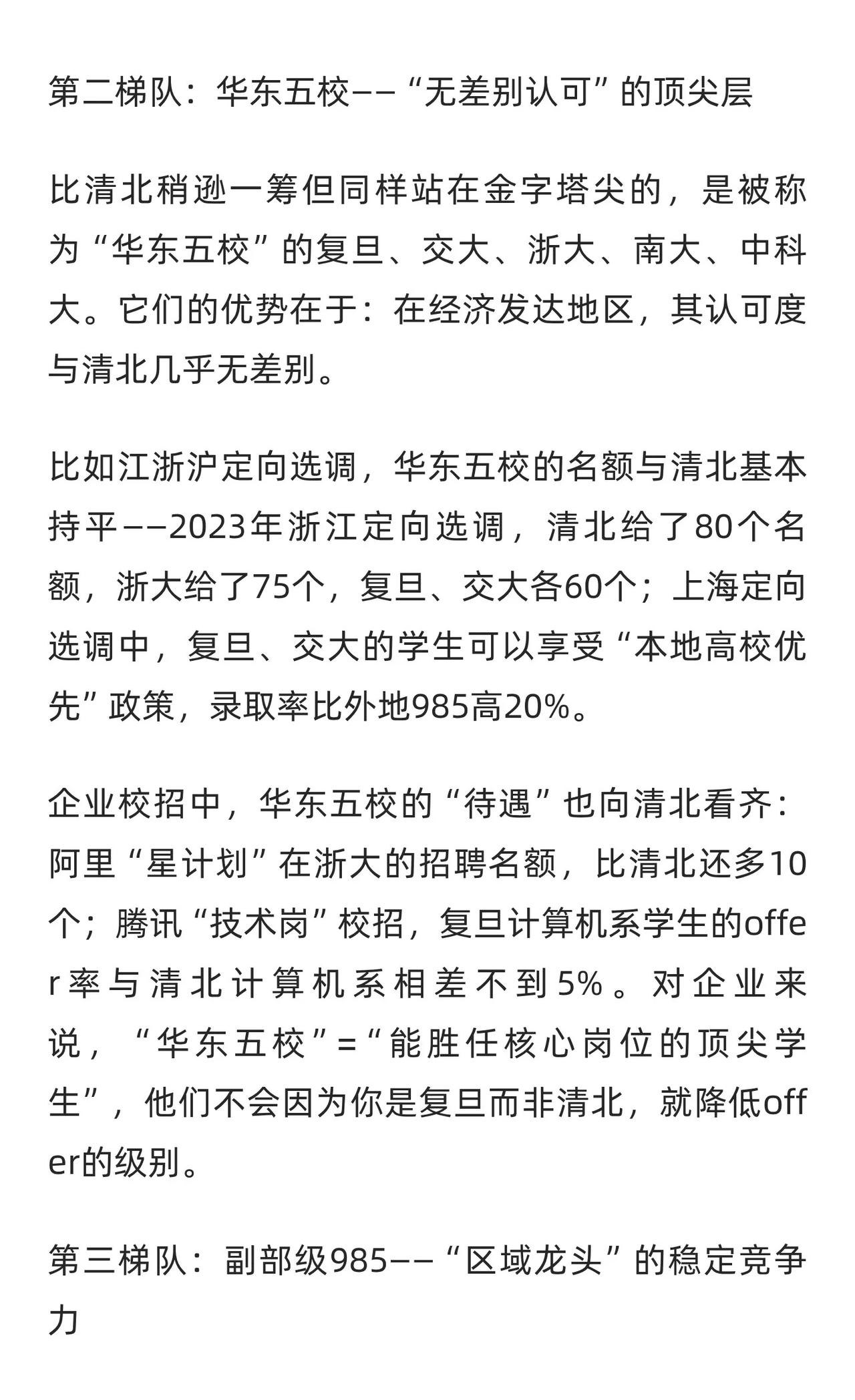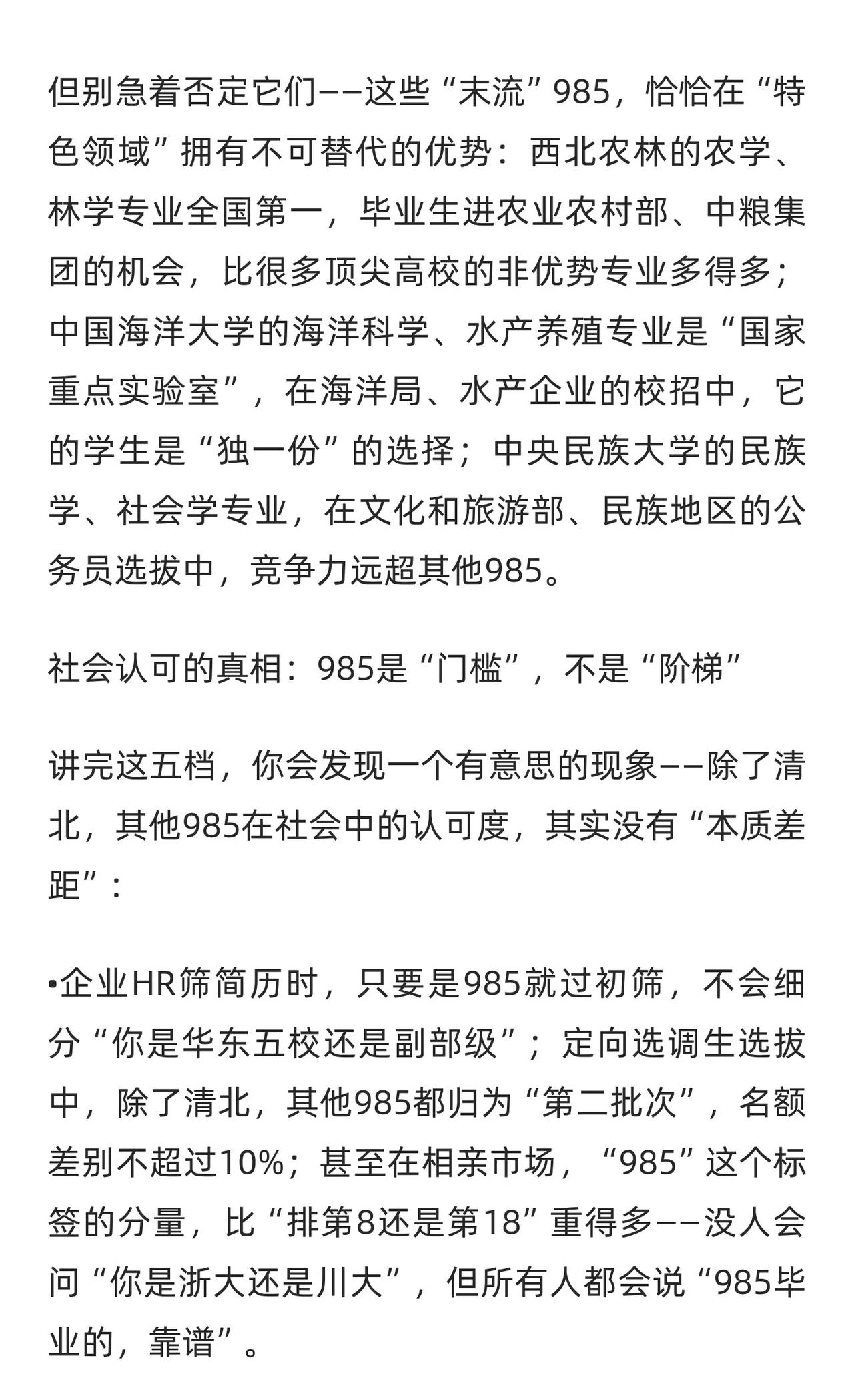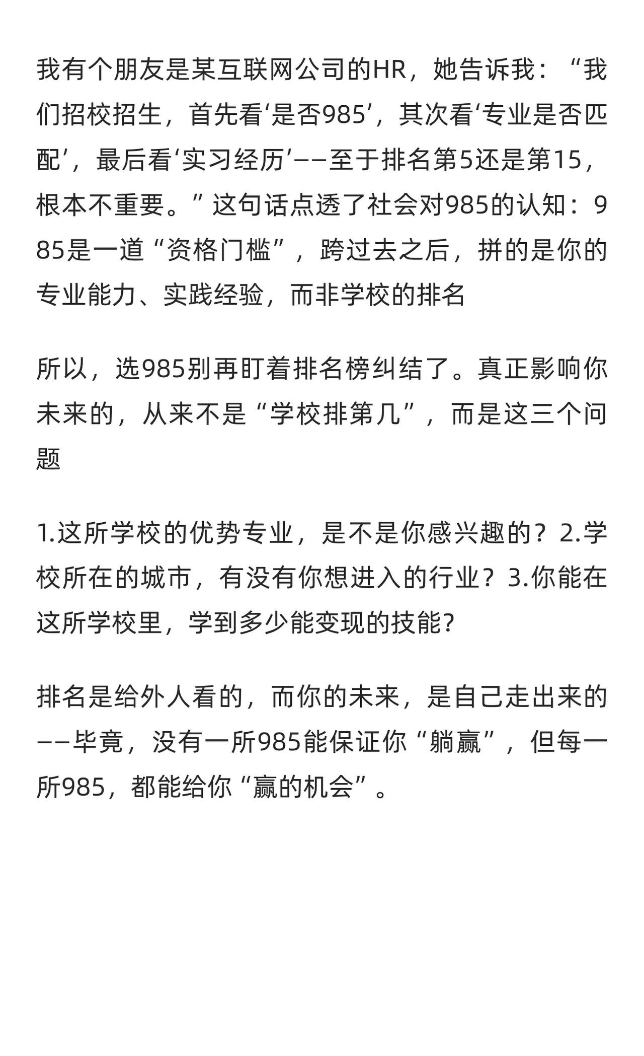 选985别只看排名!社会认可的五档梯队曝光 我有个朋友是某互联网公司的HR,她告
