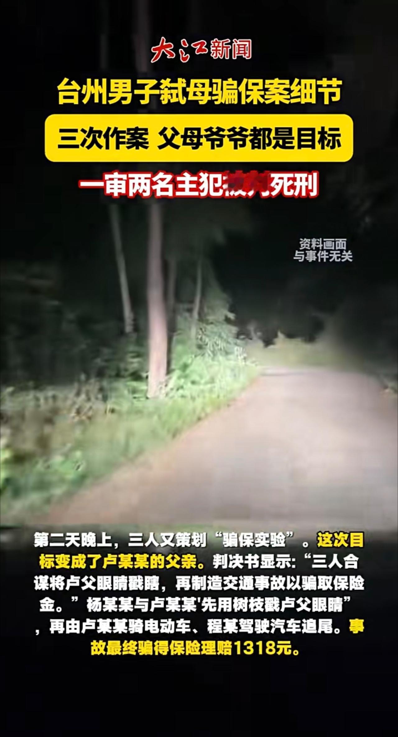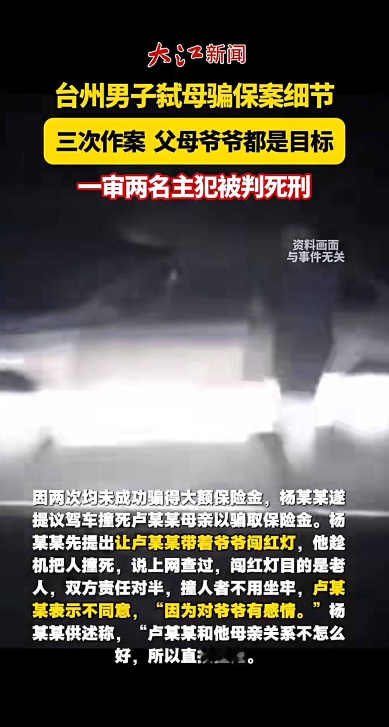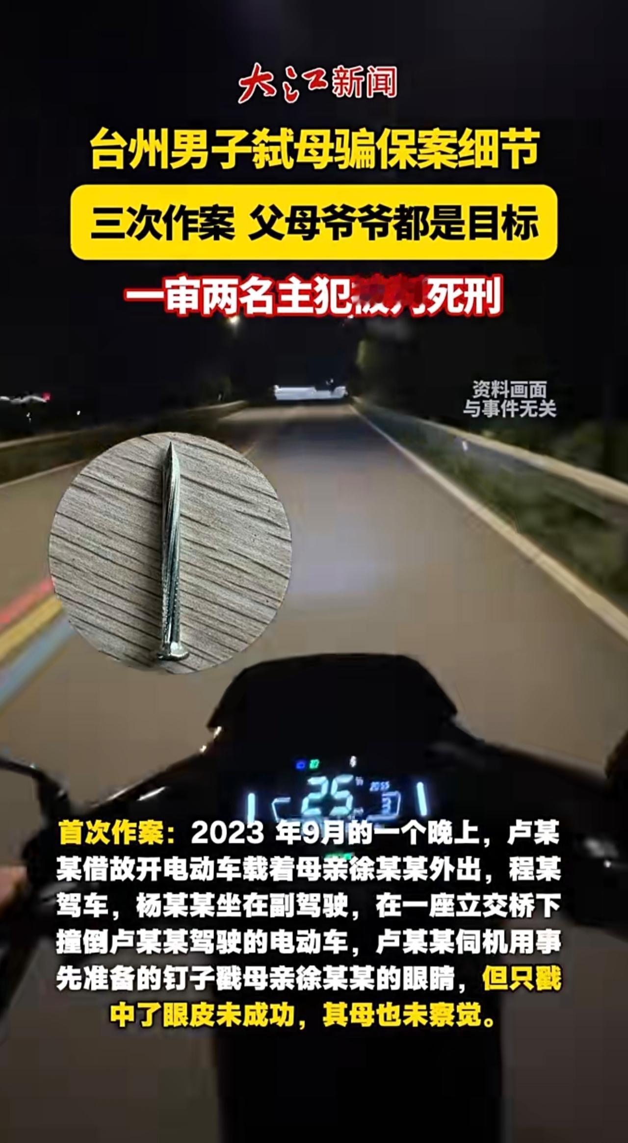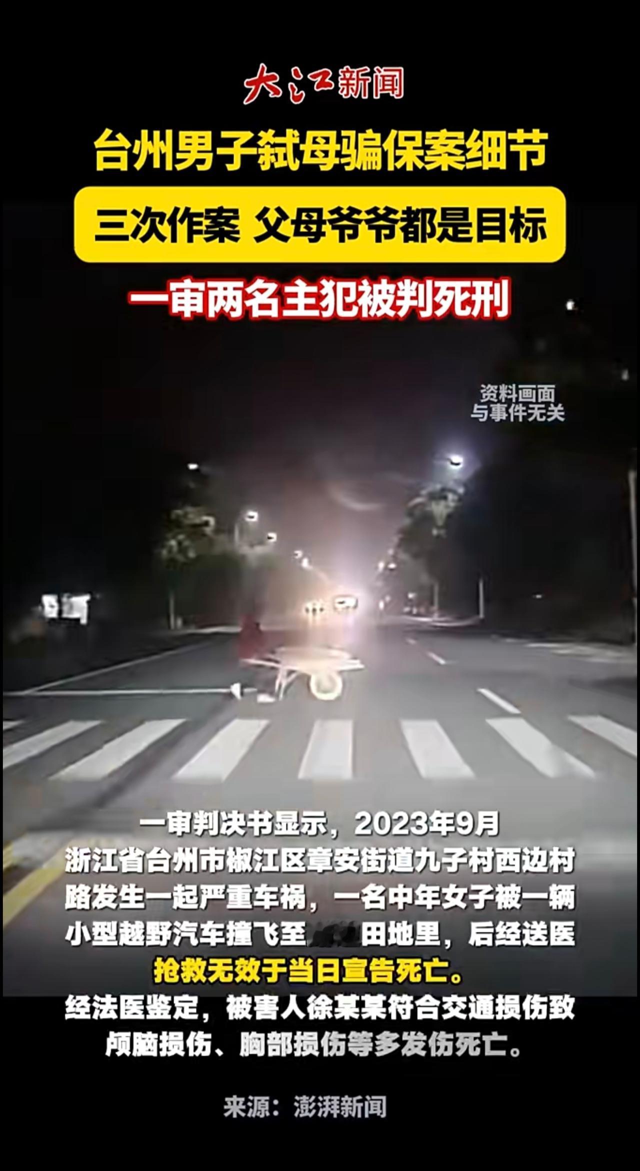 台州男子弑母骗保案细节,三次作案,父母爷爷都是目标,一审两名主犯被判死刑