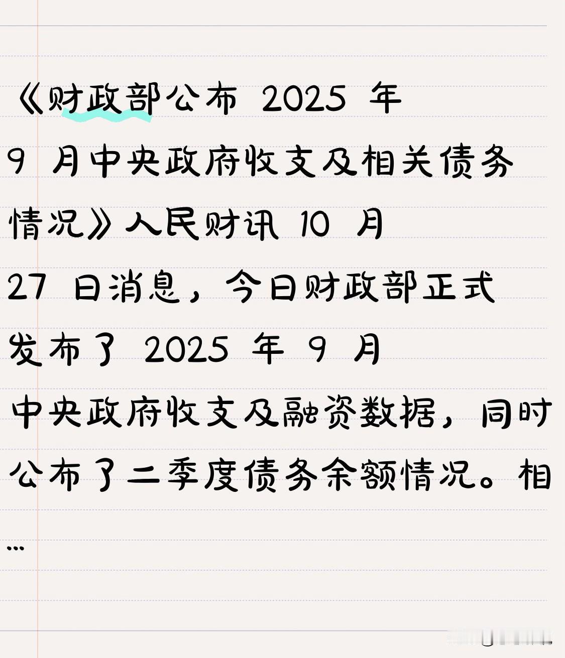 财政部公布2025年9月中央政府收支及相关债务情况债务占gdp比 人