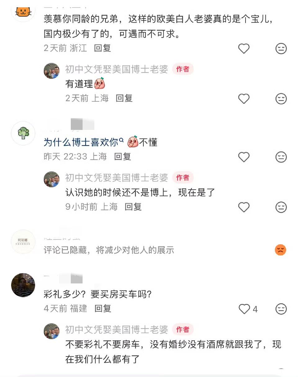 河南初中生娶了美国博士,被嘲吃软饭20年后,他的回应刷屏了! 2004年,河南小伙吴彦举在新疆一家按摩店打工时,遇见了来中国交流的美国姑娘Amy。 那时的他因工伤几近失明,家境贫寒,只有初中学历;而Amy虽是本科生,却背着数万美元的债务。 两人因一次“英雄救美”的偶然相遇,靠电子词典磕磕绊绊地交流,半年后毅然裸婚,没彩礼、没房车,甚至没办婚礼。 这场看似“门不当户不对”的婚姻,一晃走了20年。 婚后,Amy从本科读到博士,成为国际学校的教师;吴彦举则辗转多地创业,开过店、做过房产中介、搞过投资。 外人只看到他“留守家庭”,却不知他一手带大两个女儿:大女儿17岁已被美国大学录取,小女儿14岁成了国家一级游泳运动员。 家里不请保姆,他包揽育儿家务,连妻子的工资卡也交给他打理,只因信任他的投资能力。 面对“吃软饭”的质疑,吴彦举很平静:“逃避责任、完全依赖别人才叫吃软饭,而我们的分工是各取所长。” 有人嘲讽他“高攀”,也有人羡慕他“逆袭”,但吴彦举说,公开故事不是为炫耀,而是想告诉那些身处低谷的人:婚姻的本质是互相扶持,不是标签匹配。 20年来,Amy学包饺子适应河南农村旱厕,他自学英语支持妻子学业,两人用“捏捏熊”玩具传递浪漫,把外人眼中的“不般配”过成了精神共鸣。 婚姻这场合作里,有人出学历,有人出担当,有人铺路,有人点灯。 文凭和国籍从来不是幸福的尺子,能把日子过出温度,才是真正的本事。 比起纠结谁占了便宜,不如问问:你们是否真的在彼此成就?