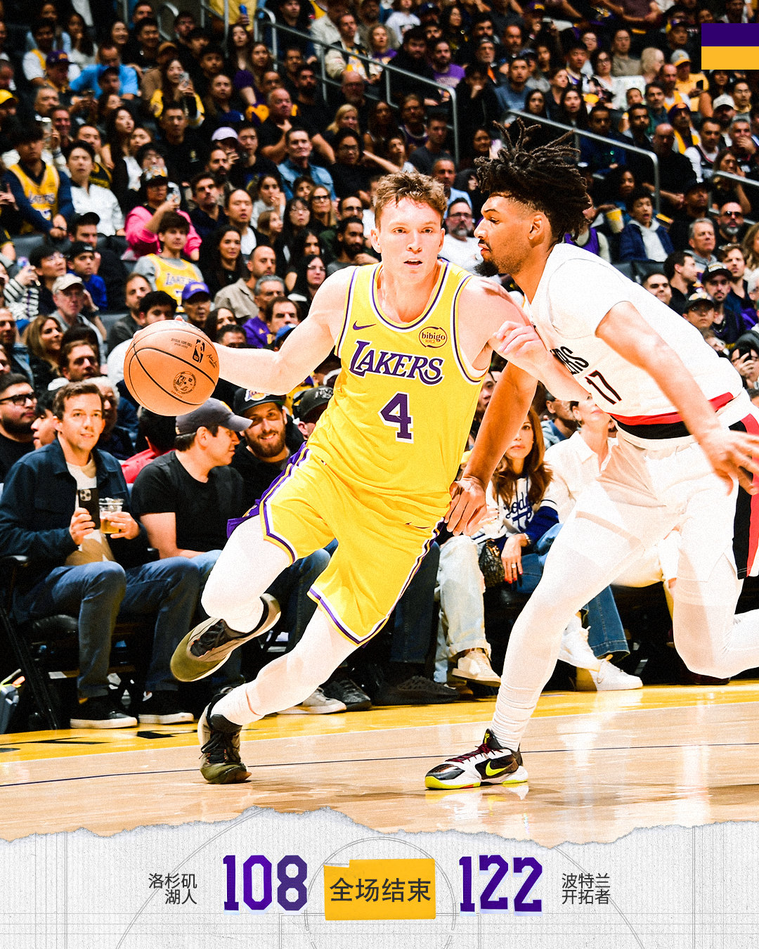 湖人 1️⃣0️⃣8️⃣ - 1️⃣2️⃣2️⃣ 开拓者