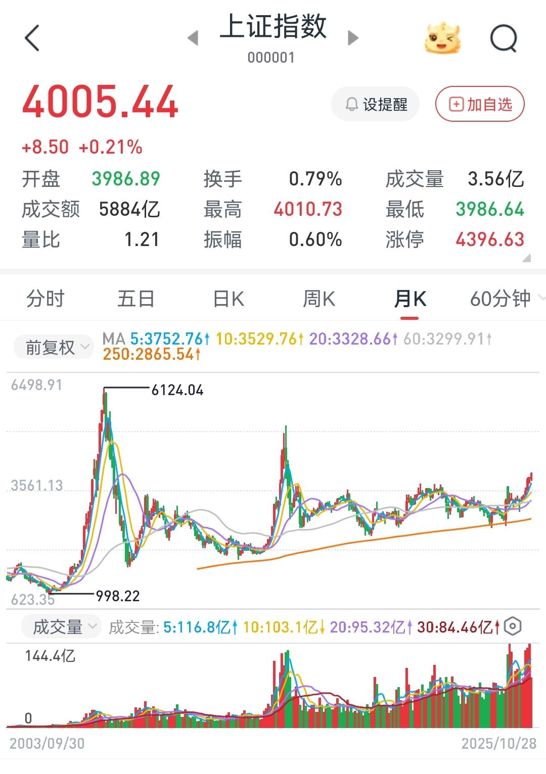 前方高点5178,历史高点6124。加油! 10月28日早盘,A股