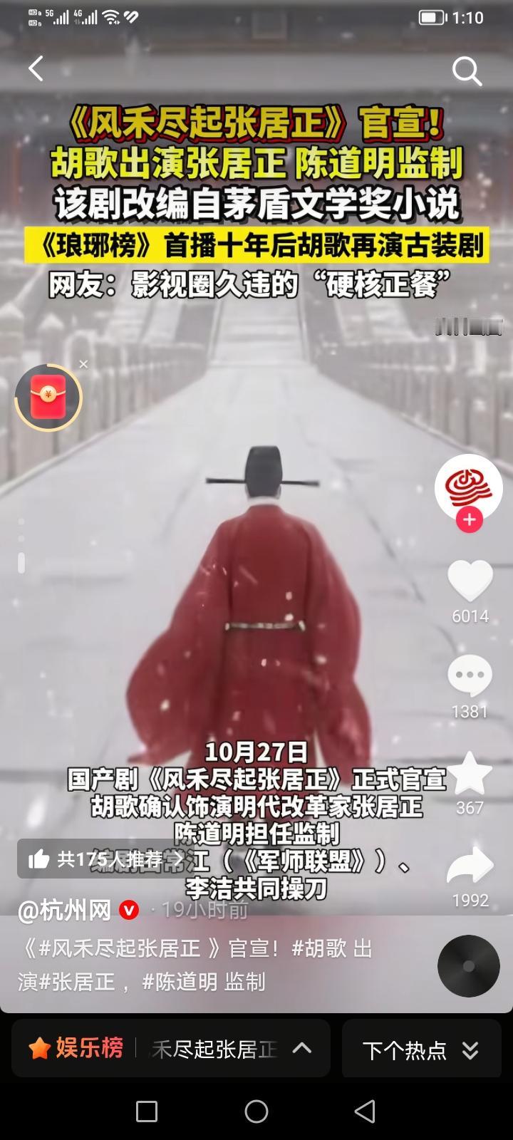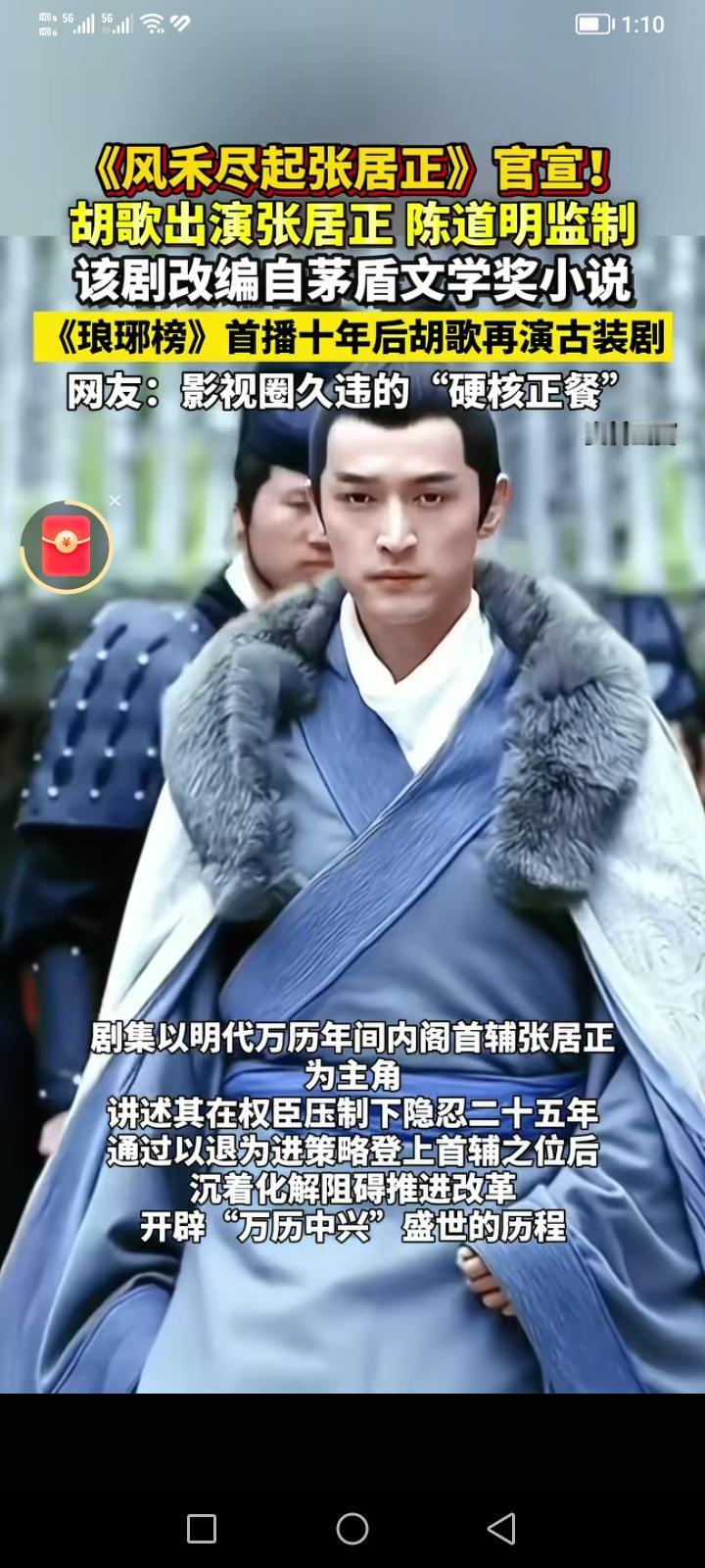 昨天官宣了由胡歌出演电视剧《风禾尽起张居正》,网友推荐了自己喜欢的人选。不过我想