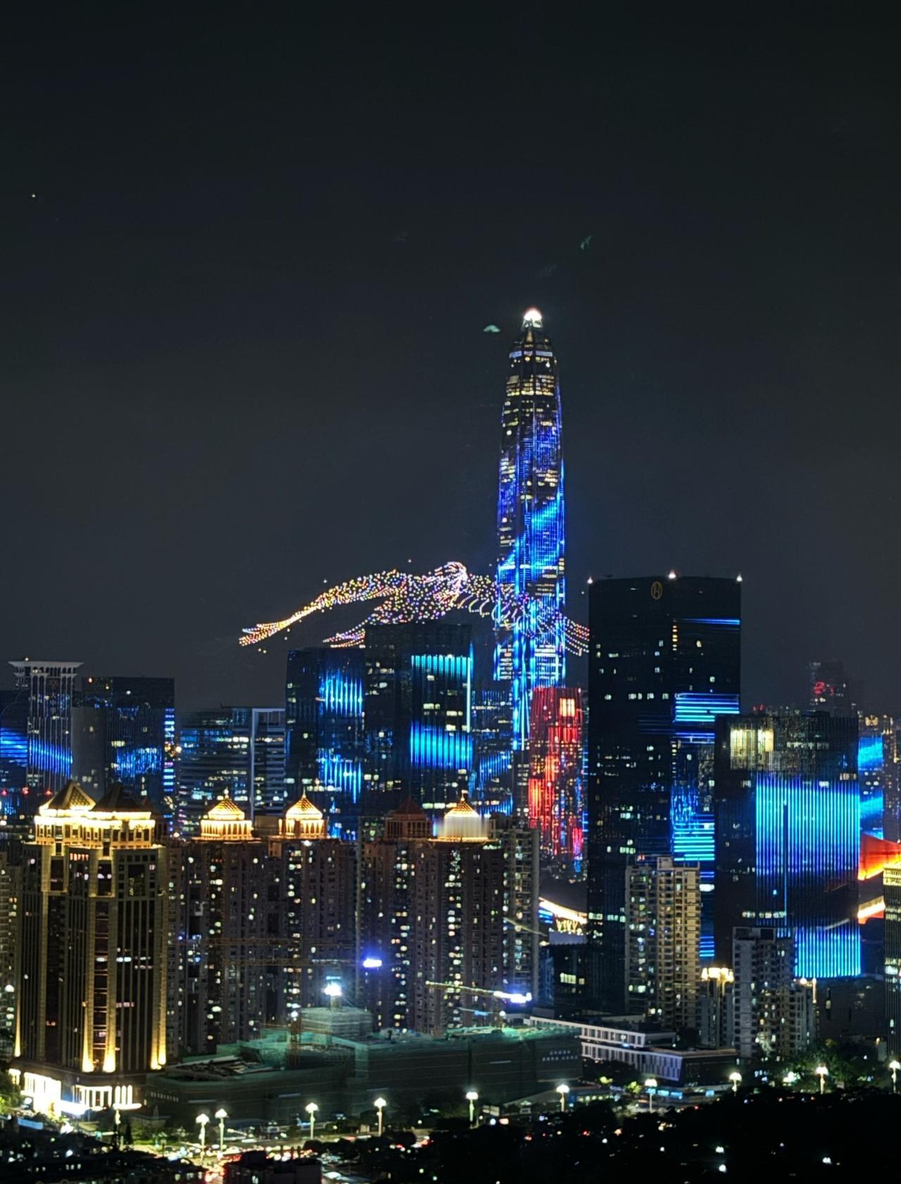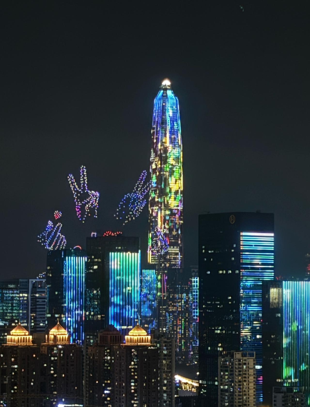 深圳45周年灯光+无人机表演,难得一遇 想预约但是根本约不上,还好地方比较大也不一定非要在预约的广场上看 虽然有遮挡,但是整体还是感受挺震撼的 这些年深圳一直在进步,发展 感受到科技的力量!
