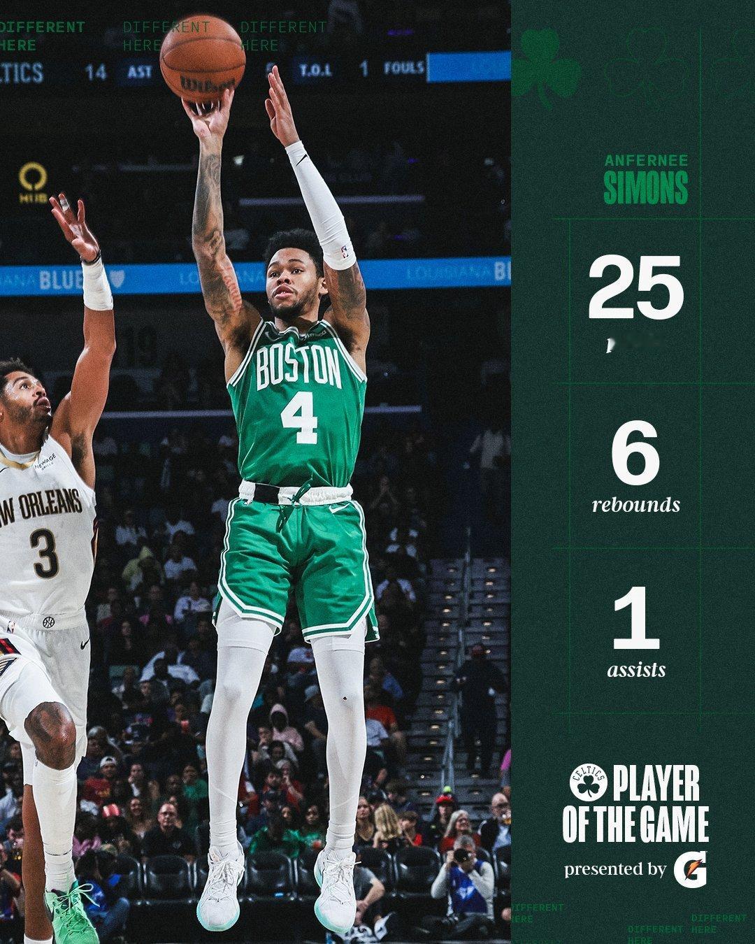 替补席上的一把尖刀!本场比赛,安芬尼-西蒙斯出战32分钟,17投9中,其中三分球13投6中,罚球1投1中,得到25分6篮板1助攻1抢断!nba新赛季2025凯尔特人热爱日记