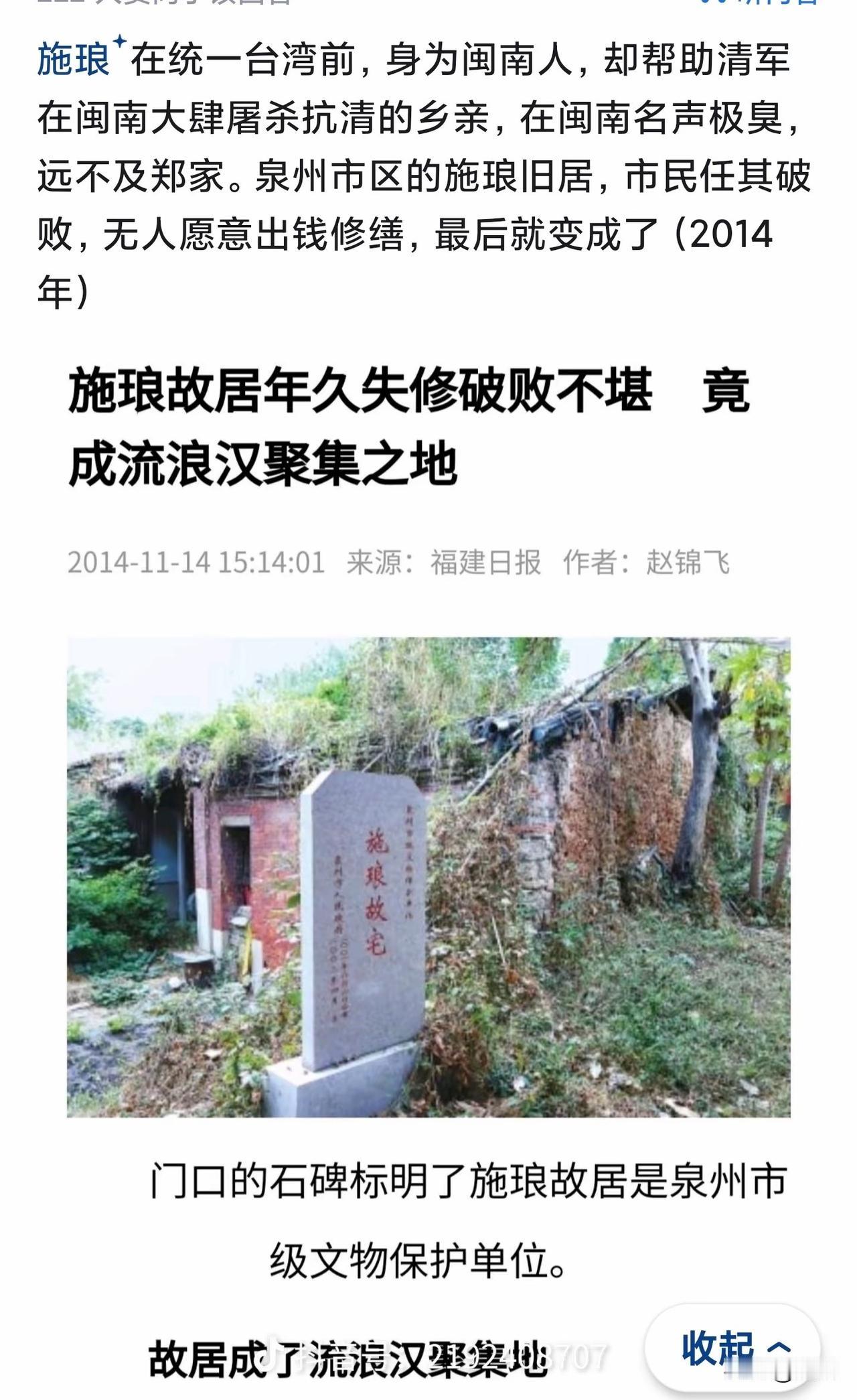 近期某导演推出的《澎湖海战》驱除鞑虏,恢复中华,统一台湾,势不可挡。 但是《施琅》确实在乾隆年间编入了《贰臣传》的人物,就连实际施琅的故居年久失修破败不堪,竟成流浪汉的聚集之地。 为何现实和宣传差距这么大?针对此事,大家怎么看?施琅将军墓园