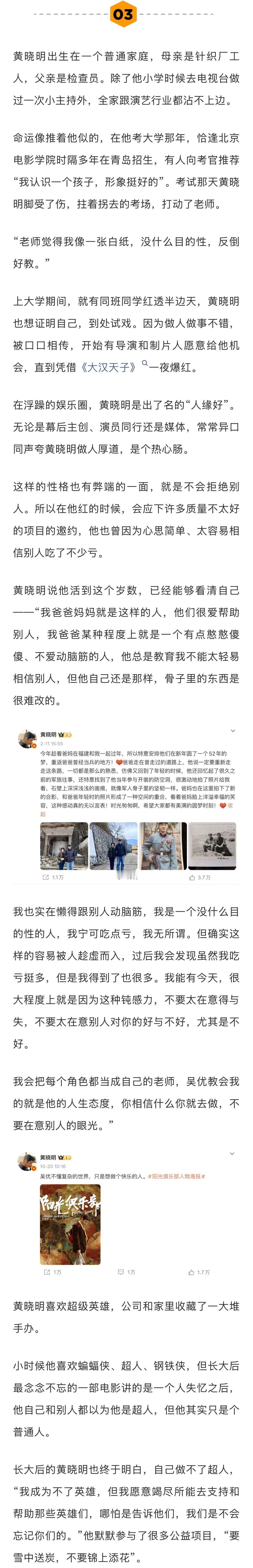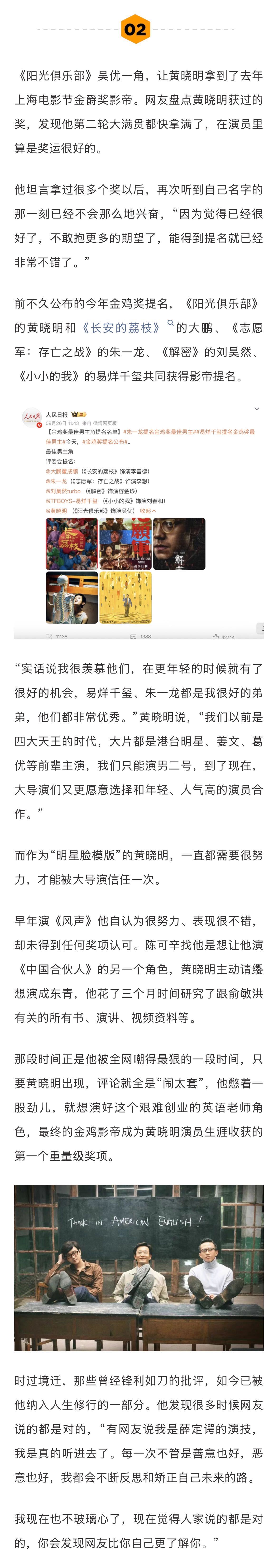 黄晓明回应三提金鸡奖影帝黄晓明 我现在也不玻璃心了 回应金鸡奖影帝提名:“实话说我很羡慕他们,在更年轻的时候就有了很好的机会,易烊千玺、朱一龙都是我很好的弟弟,他们都非常优秀…以前是四大天王的时代,大片都是港台明星、姜文、葛优等前辈主演,我们只能演男二号,到了现在,大导演们又更愿意选择和年轻、人气高的演员合作。”造浪吧国庆档↓