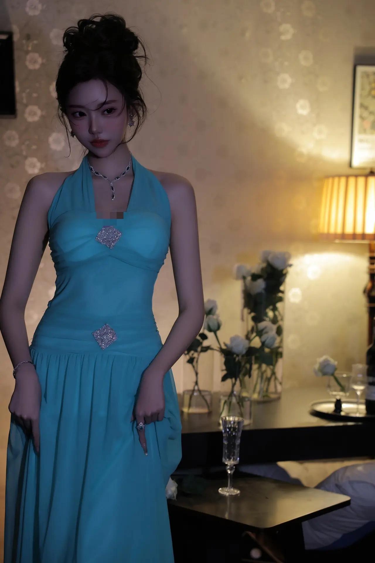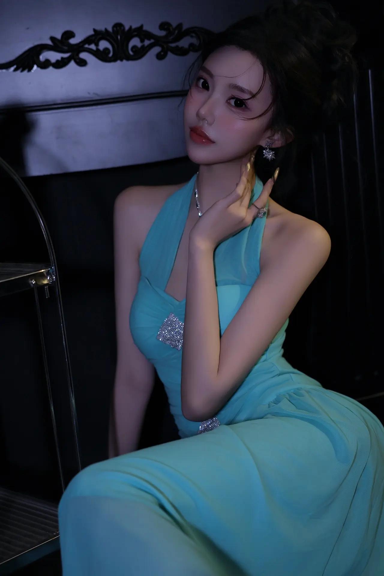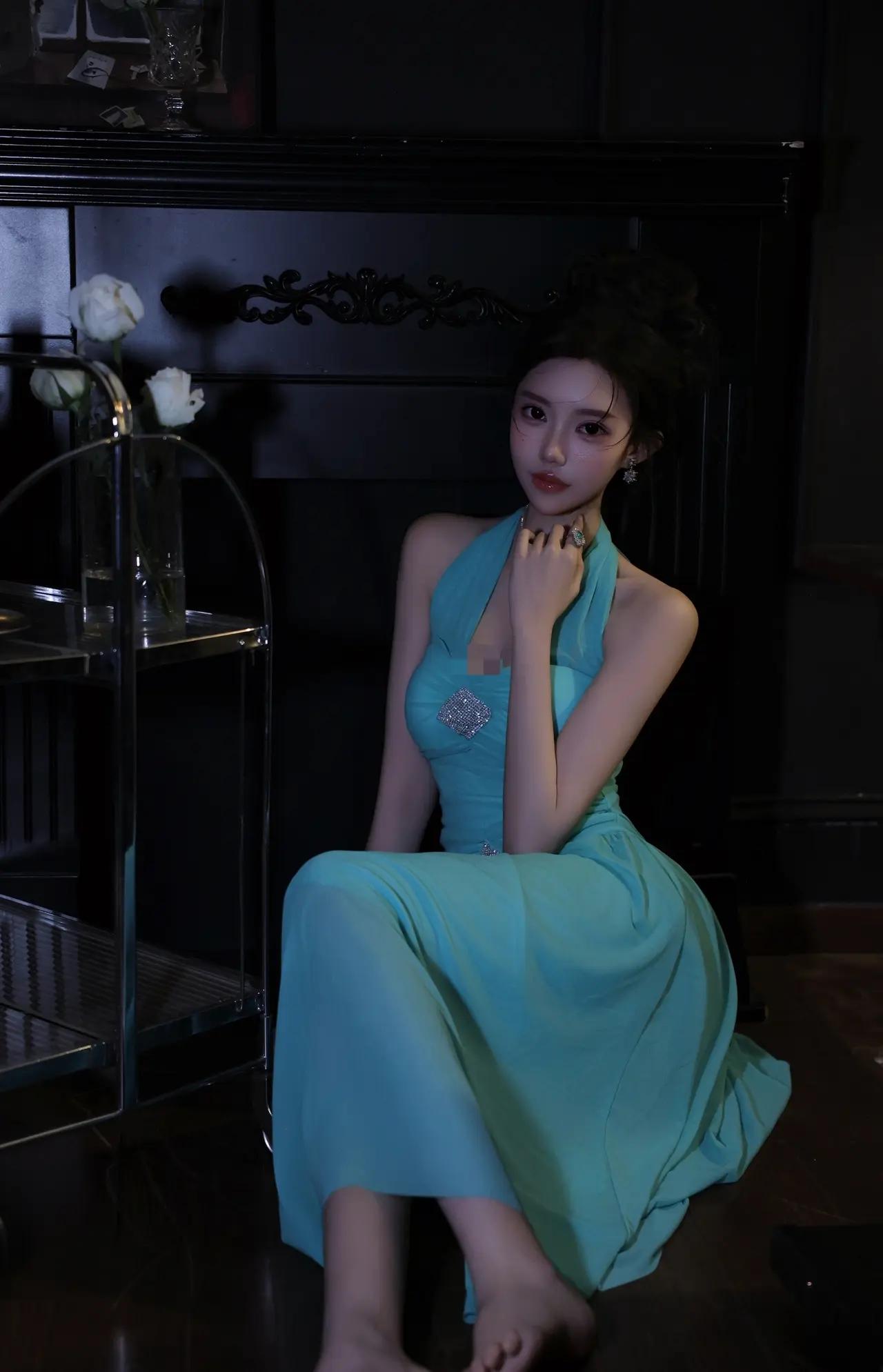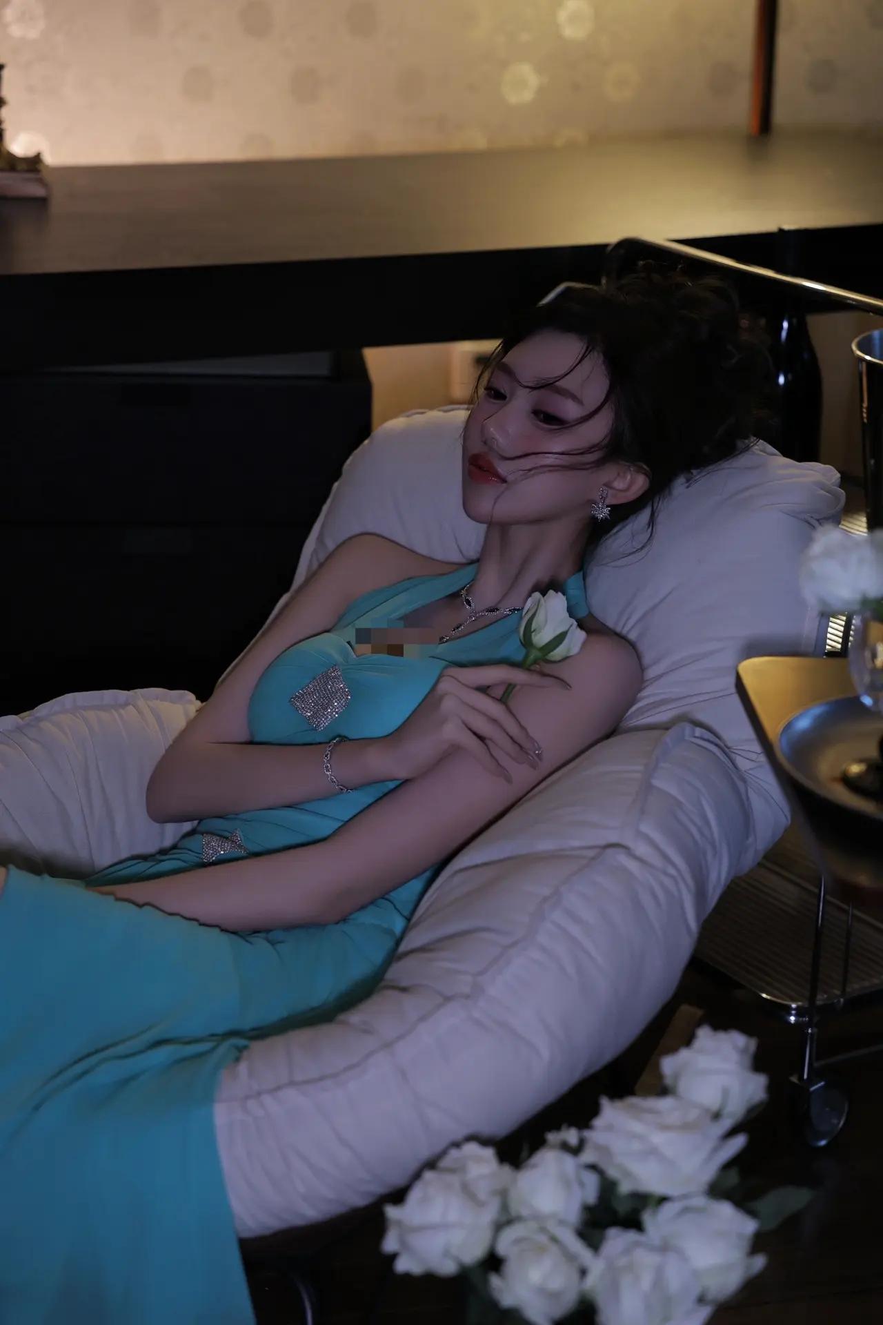 优雅蓝裙,静享时光,玫瑰相伴,美不胜收。