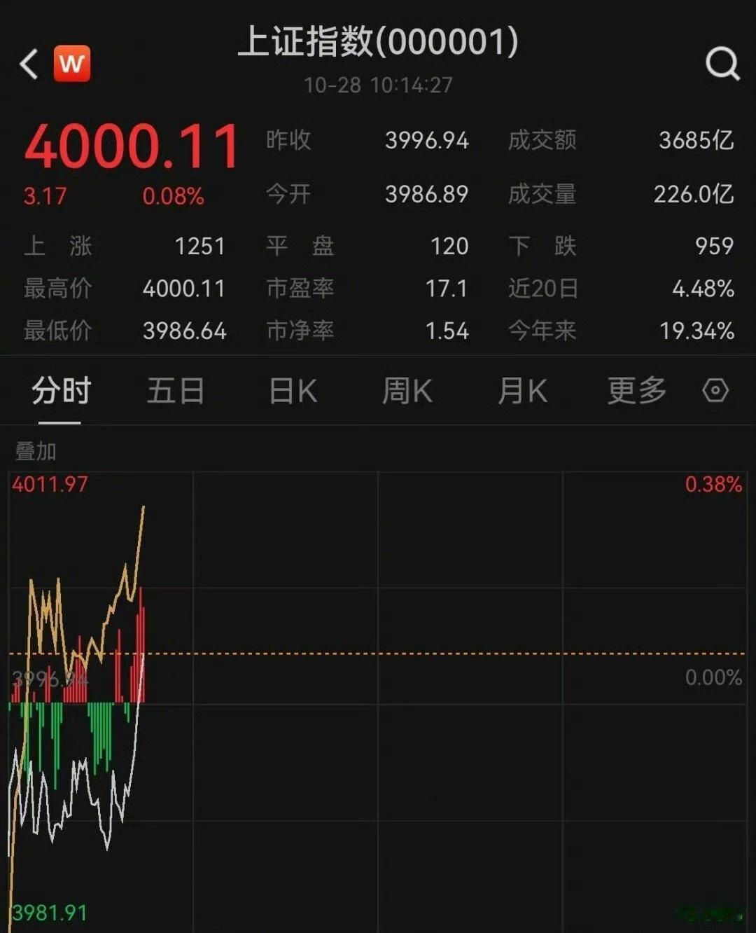 a股突破4000点 今天破4000点,微博竟然一点动静都没有?