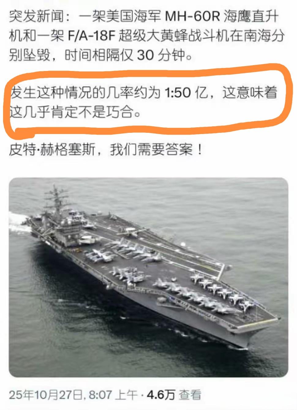 老美表态,战机坠海都是自己的原因,与别国无关。 老美国内却认为这种坠海几率只有50亿分之一,让战争部长给出解释。 但无论如何老特都必须站出来灭火。 不是老美学会了理性与文明。 而是当老美需要战争时,没有借口老美也能诬陷他国制造理由。 要打 肯定也要先打小菲律宾 有可能是故意搞两架报废机下去 好找借口去水下干其他事情 也或者其他原因 但是绝对不可能我们搞下来的 还没有到那个时候 肯定不是巧合,早不出事晚不出事,一到南海就出事!!!一定是印度干的!!! 对此你怎么看?