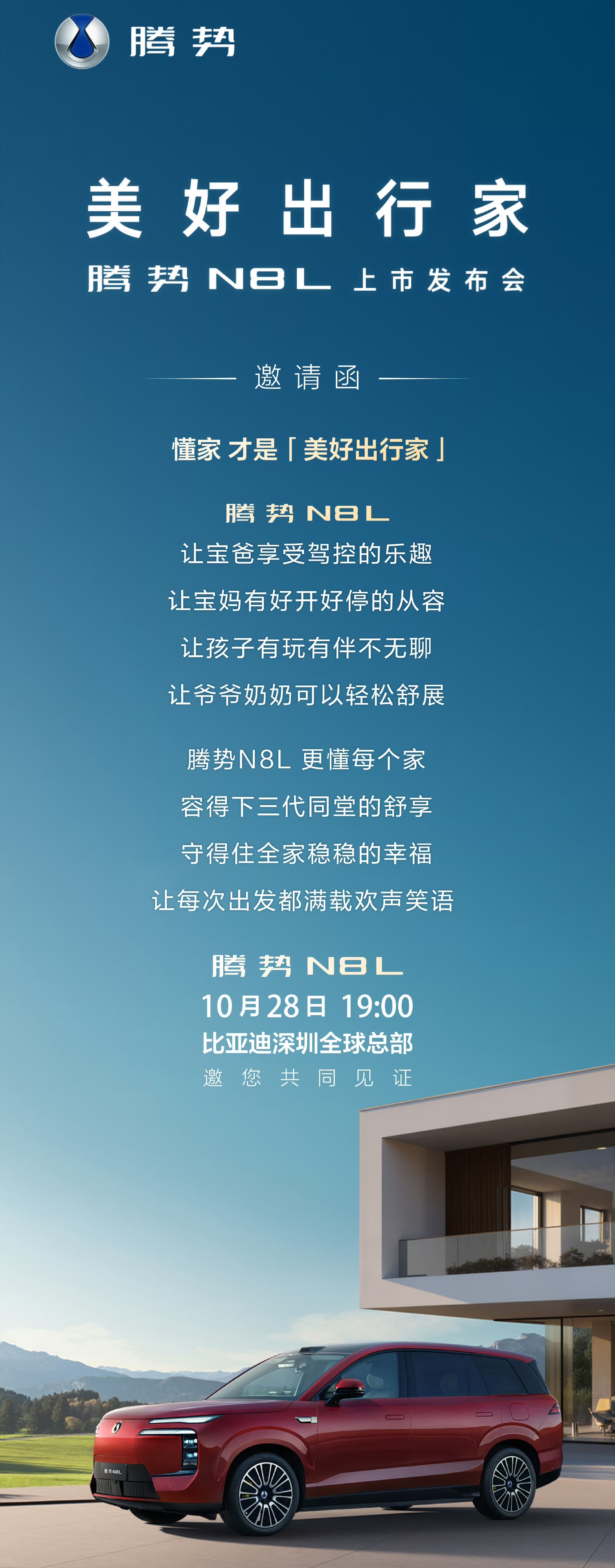 豪华大六座腾势N8L今晚上市今晚19点腾势N8L上市发布会,大家觉得价格会是多少,评论区一起聊聊,猜对有红包🧧