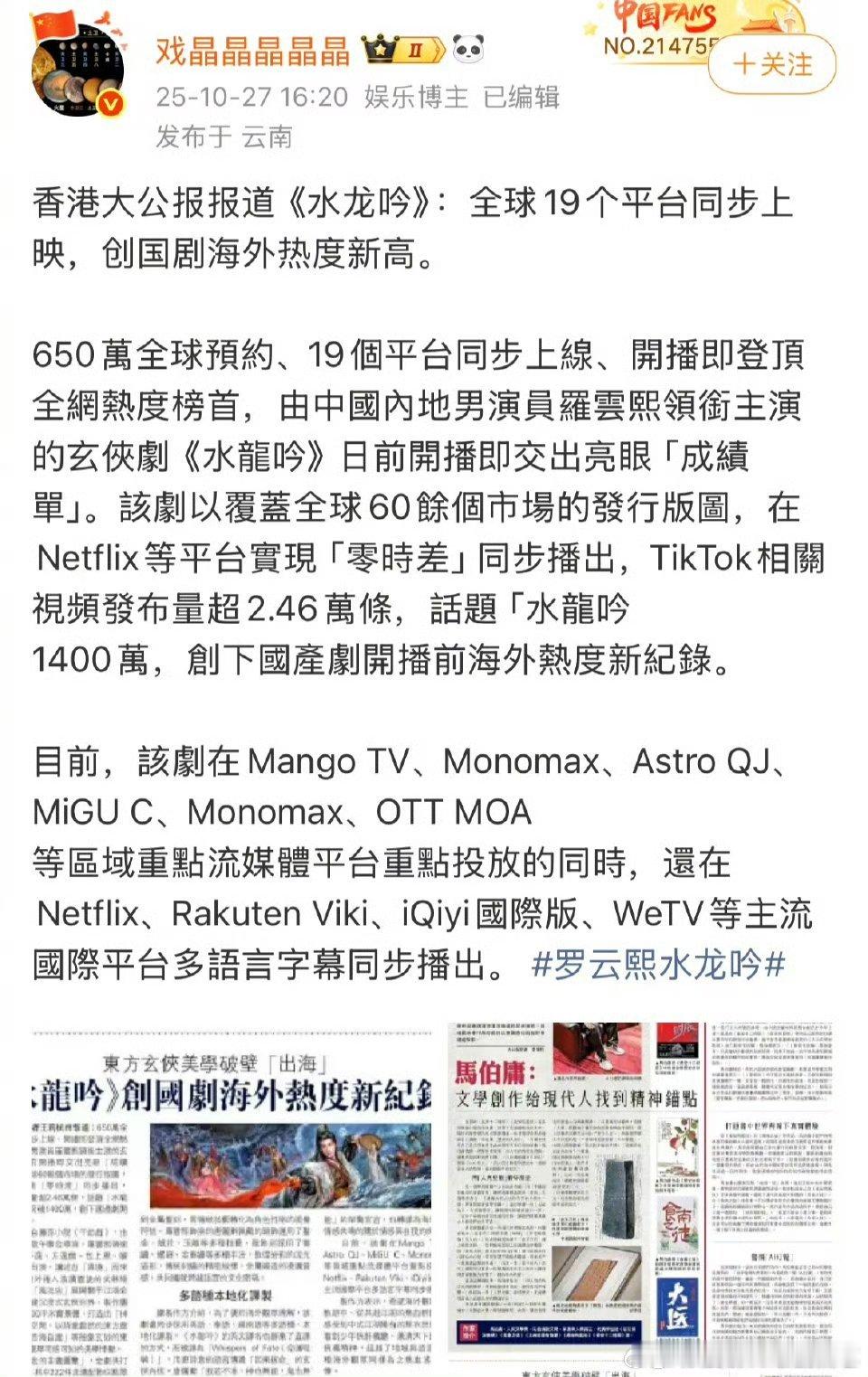 张雨绮那句,演员光有人气不行!实力派必须有作品!含金量还在上升。陈伟霆接《