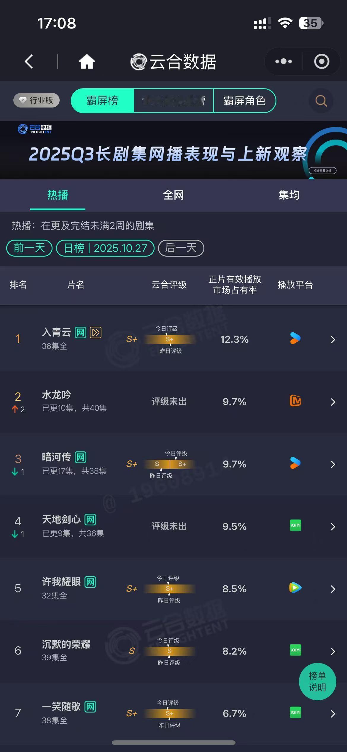暗河传云合评级 《暗河传》这次真的鲨疯了!单更都能稳坐S+评级,暗河组织的权谋大戏越追越上头。苏暮雨的打戏每帧都是壁纸级,现在连路人都自发安利,果然好剧自带光环!已经搬好小板凳等更新了!电视剧暗河传
