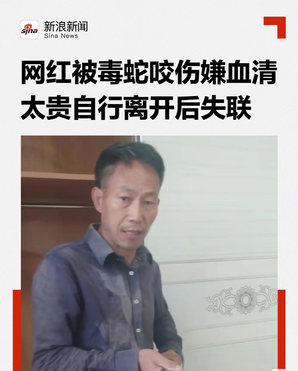 再贵难道比生命更贵? 网红被毒蛇咬伤,嫌血清太贵自行离开后失联! 10月26日晚