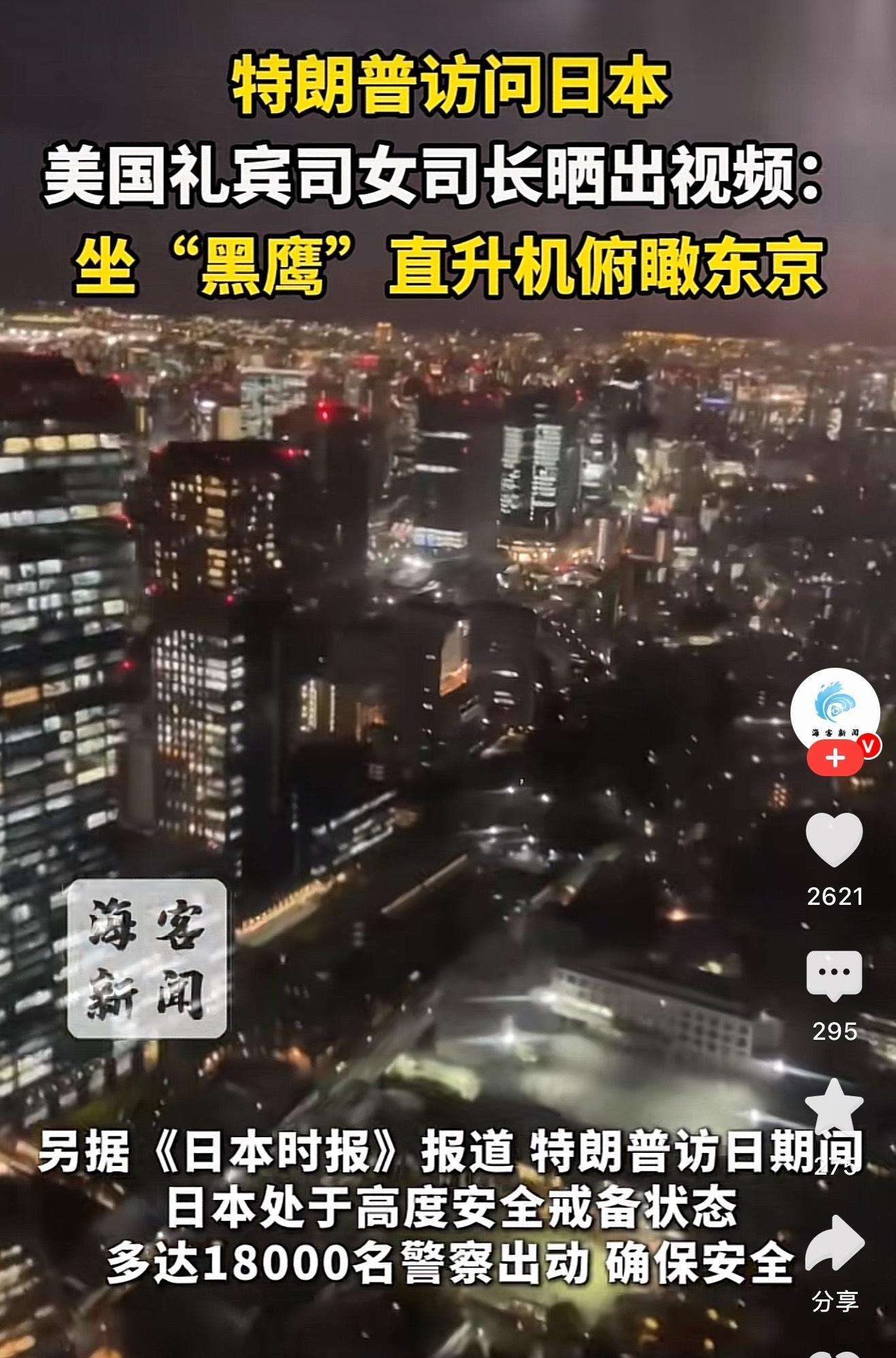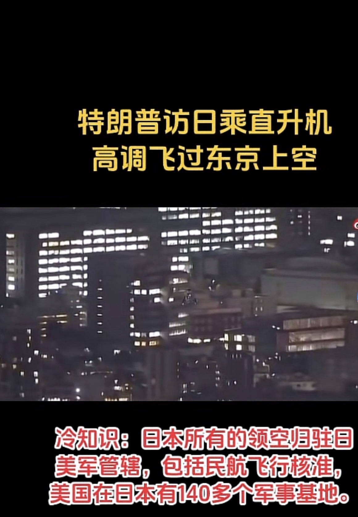 特朗普的直升机高调飞越东京上空,就是在宣誓主权。刚刷到视频看到原来日本有一部分领