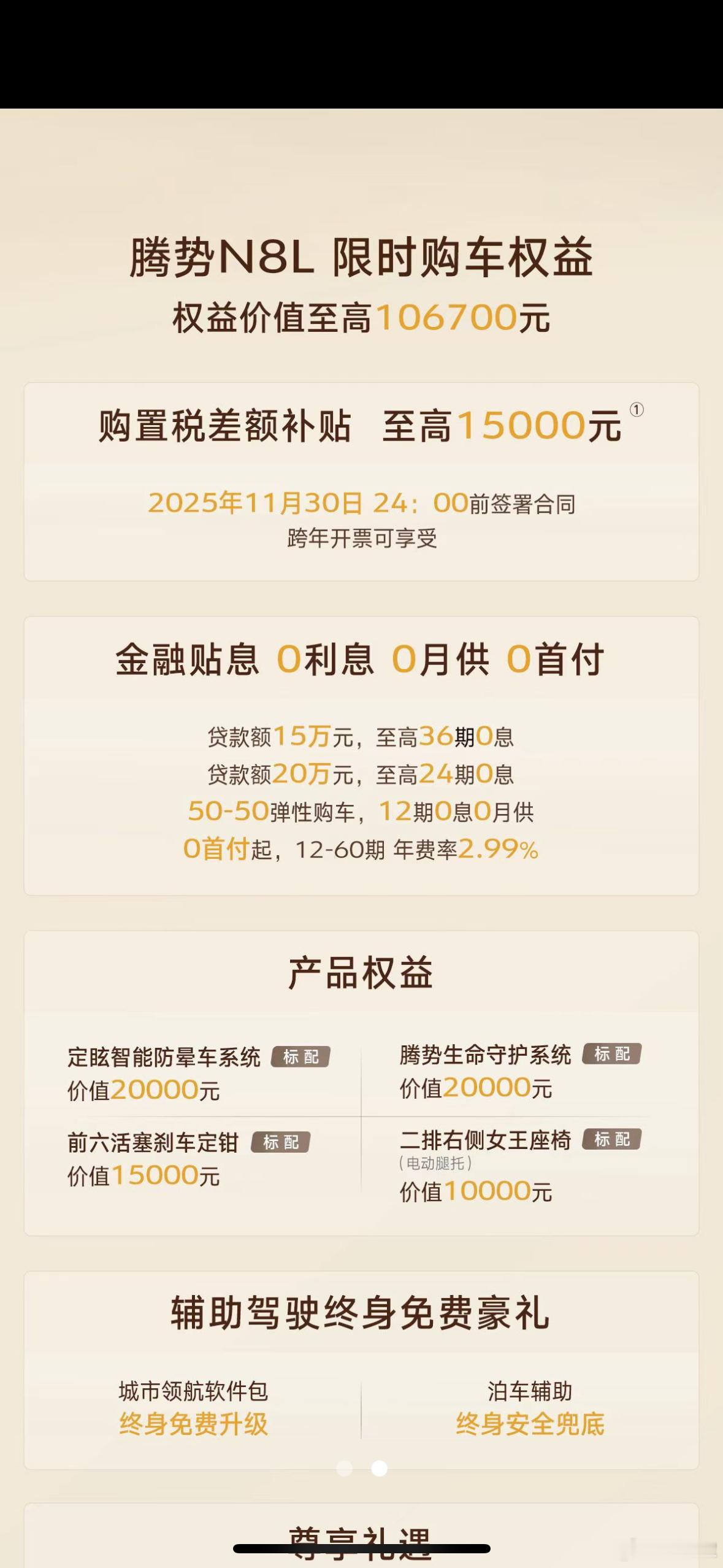 作为一款5米2的大6座,有2.0T插混,易三方电机带后轮转向(同级最好的转弯半径和灵活性)、零百加速3.9秒、馈电油耗6.1升已经属实难得,关键还标配双腔空悬,其实29.98万这款就够了,想要电吸门可以上32.98万的旗舰型。腾势n8l大六座安全豪华suv构筑豪华舒适的移动港湾