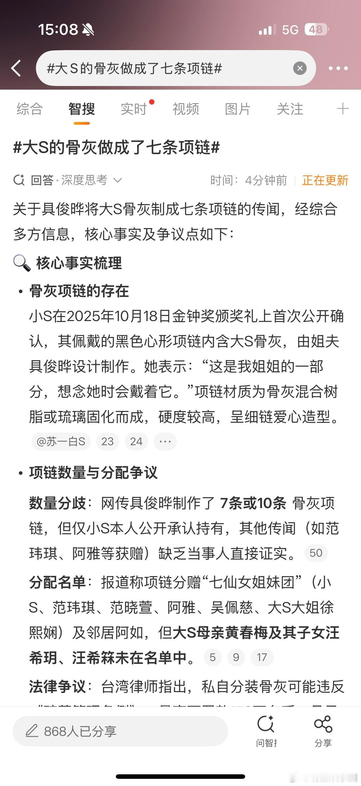 大S的骨灰做成了七条项链