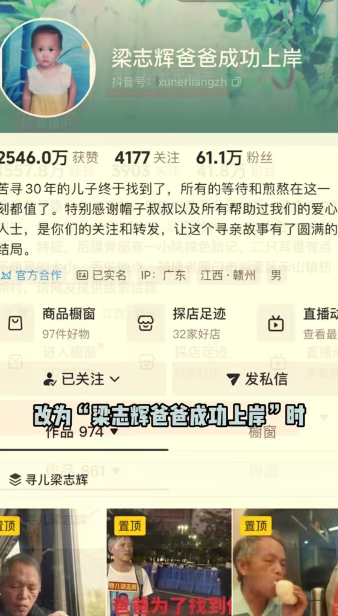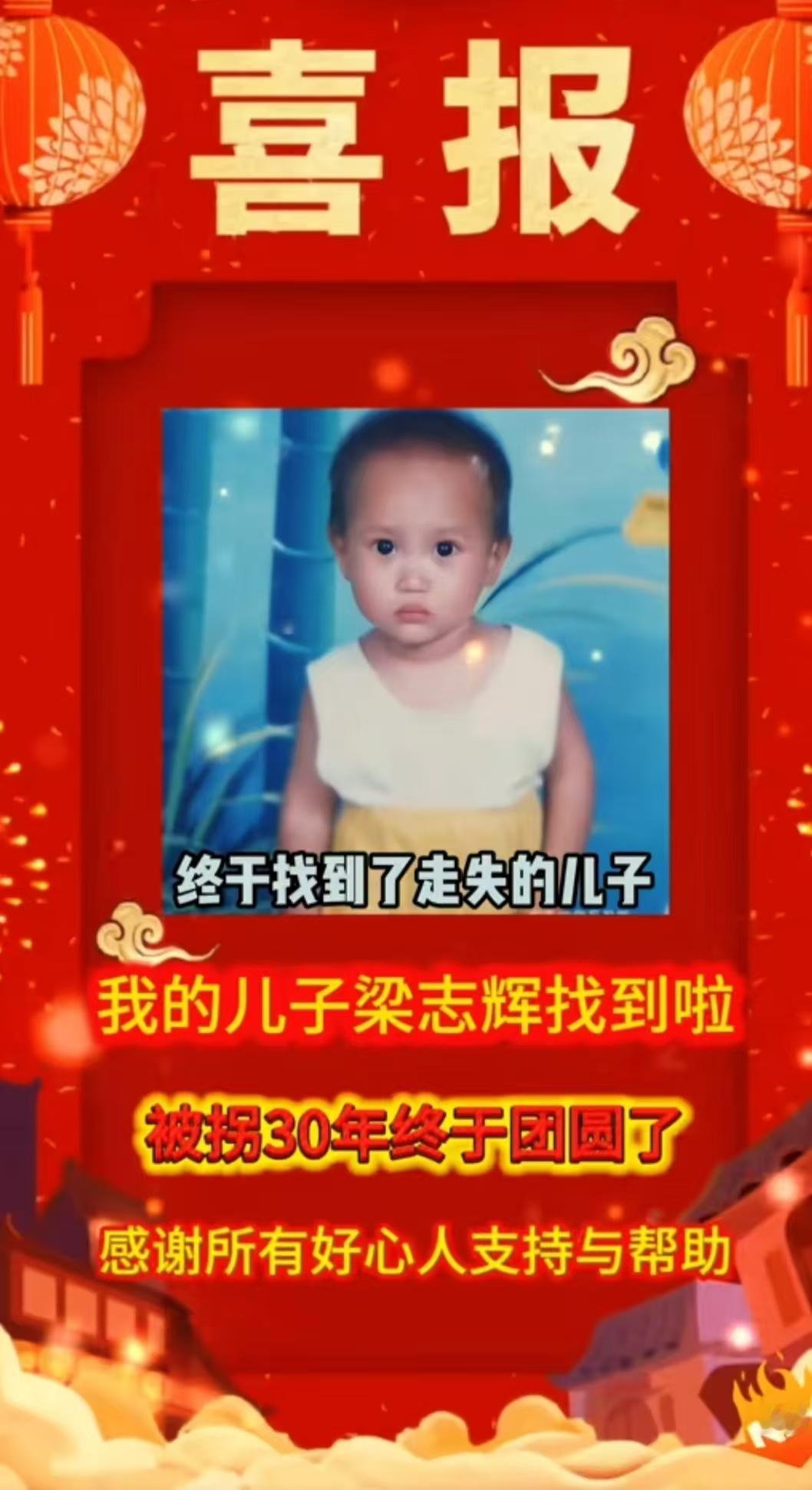我有预感,被拐三十年的梁志辉被找到这事,真的要变天了! 因为这次事件最大的影响,不是找到梁志辉给梁家得到团圆,也不是结束了梁爹三十年的寻子,而是他用的ai模型立了功这个会改变我们的世界 谁看了梁志辉家的故事不晕啊?前几天刷到“都市现场”的直播,看完直接崩溃了!1995年的厦门,就因为3分钟,一个家彻底变了样。视频里梁父说,当时他正做饭,刚给两岁的梁志辉洗完澡,让同住的熟人帮看会儿,转头娃就没了。说实话,现在听着都揪心,可那时候打工族聚居区,不都这样吗?就像你出门让邻居帮看会儿狗,谁能想到是引狼入室啊? 视频里还原了当年的场景:1995年厦门,梁志辉他爸在厨房忙活,同住的三个人分工明确——一个在门外等,一个拉着他扯闲传分散注意力,还有一个凑到娃跟前说“陪你玩啊”。从搭话到娃被带走,不到3分钟!梁父出来找娃时,还以为是熟人带娃溜达去了,压根没报警,等反应过来,最佳寻娃时间早过了。不是吧?谁能防着天天见面的人啊?就像你跟同事一起吃午饭,能想到他会偷你手机吗? 视频里梁父现在两鬓斑白,可他说当年丢娃时,还是个精神小伙。这30年,他就干一件事——找娃。有一段他说,有回听说外地有个娃跟梁志辉同岁,他揣着寻子宣传图和攒的一点钱,跨了几千公里赶过去。晚上8点多到那户人家,人家把娃抱出来,他瞅了又瞅,眼泪唰就下来了——不是!视频里他说这话时,声音都在抖。更惨的是,那天晚上他走错路,还下着雨,只能钻田埂的草堆里过夜,第二天直接发烧病倒,身体从此就垮了。之前刷到过另一个寻亲大哥的视频,跟他一模一样,认错娃在路边哭,嘎嘎心酸! 直播里梁父还说,有回寻娃路上遇到个歹人,不仅把他的钱抢了,还把寻子宣传图扔地上踩。他赶紧说“我是找娃的,你别抢啊”,结果人家根本不管,拿着钱就跑了。视频里他说“那时候真的想放弃,可一想到娃,又只能扛着”。说实话,看到这儿我真的鼻子一酸,寻娃本来就难,连坏人都欺负他,这日子咋熬啊? 直播里还提到梁志辉的奶奶,今年86岁了。刚知道找到孙子时,她拉着梁父说“麻溜地带我去见”,可梁父怕奶奶年纪大,经不起长途奔波,也怕见面情绪激动出意外,只能劝她再等等。视频里梁母说,现在奶奶每天都问“孙子啥样啊?啥时候来啊?”,还总让梁父讲找到娃的经过,一遍又一遍。看到这儿我真的鼻子一酸,奶奶盼了30年,连孙子的面都没见着,太难受了。 本来以为找到娃就万岁了,结果视频里说,梁志辉压根不知道自己不是养父母亲生的!家里开了会,都说“不能急,得给娃时间”,现在连认亲计划都没定,就偶尔打个电话,提提以前的小事,不敢说身世。视频里梁父说,之前听老人说“凡事都讲个缘法,急不得”。想想也是,要是有人突然告诉你“你不是爸妈亲生的”,谁能不懵啊?换谁都得缓好久吧? 直播里梁父梁母坐在镜头前,一说起寻娃的事就哭。从1995年娃被拐,到每次寻娃的路线,再到被抢钱、睡草堆,说着说着声音就抖了,得停一会儿才能接着说。视频里能看到,评论区唰唰刷地跳——“叔叔阿姨太苦了”“一定要好好的”“染黑头发等他,他会来的”。有个评论我印象特深:“30年都等了,不差这一会儿,慢慢来”,说实话,看到这儿我也跟着哭了。 视频里还拍了梁家现在的样子:梁父把头发染黑了,全家都换了新衣服,墙壁重新刷得雪白雪白,连墙角都擦得干干净净。梁母说“本来想等他回来给个惊喜,现在虽然没定认亲时间,但先把家收拾得排场点”。河南话说“得劲”,现在家里就俩字——得劲!虽然还不知道娃啥时候能回来,但这份心意,真的太戳人了。 看完这个直播,想跟大家说句掏心窝子的话:要是身边有寻亲的人,多给点鼓励,他们真的太不容易了。还有啊,看孩子千万不能掉以轻心,哪怕是熟人,也得多留个心眼,别让“搭把手”变成“一辈子的痛”。另外,要是遇到类似认亲的事,别着急逼孩子,缘分到了自然就顺了,你们说对不?
