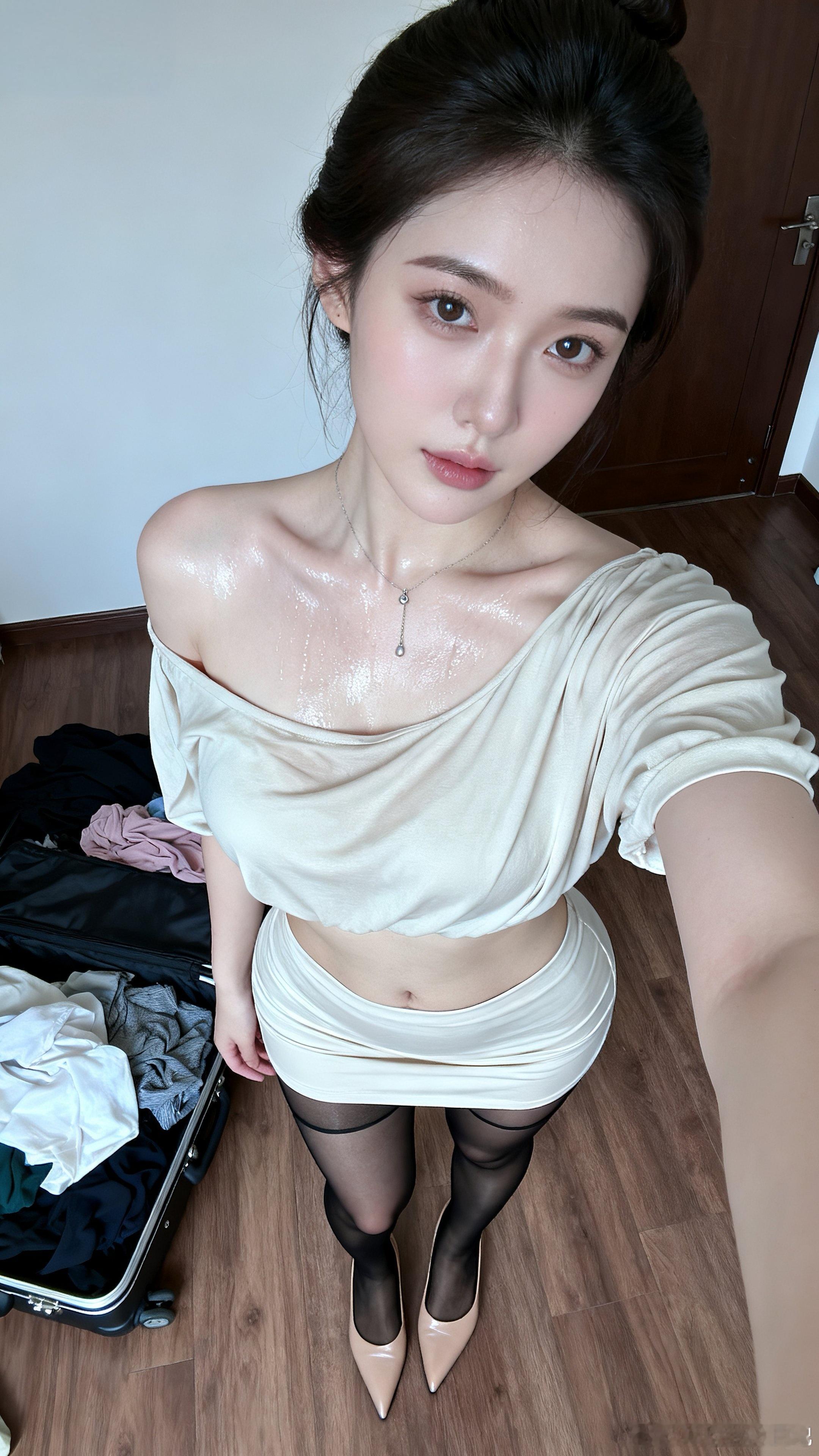 今天穿什么[超话] 一字肩,短裙,平底鞋美女精彩人像[超话]