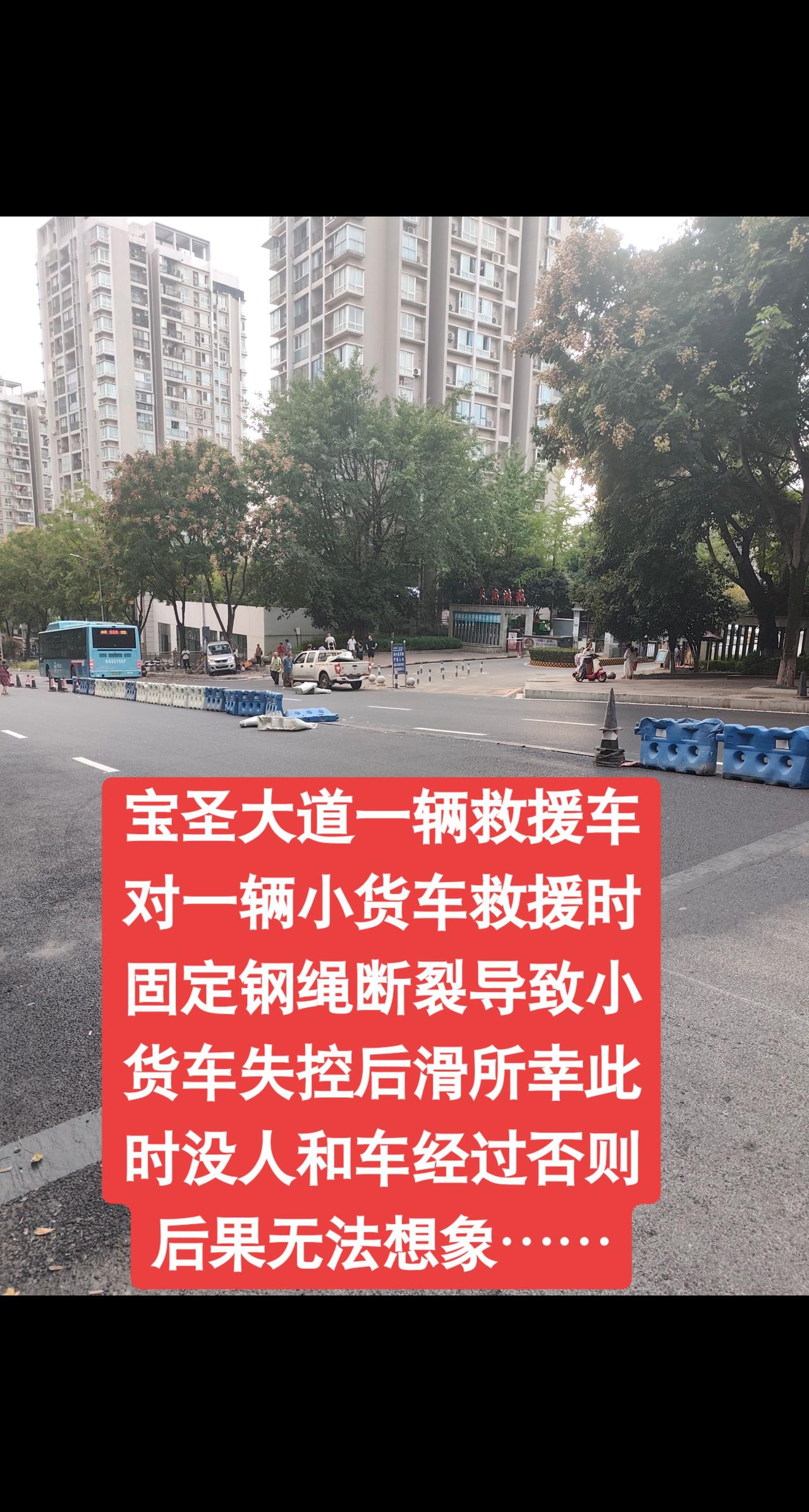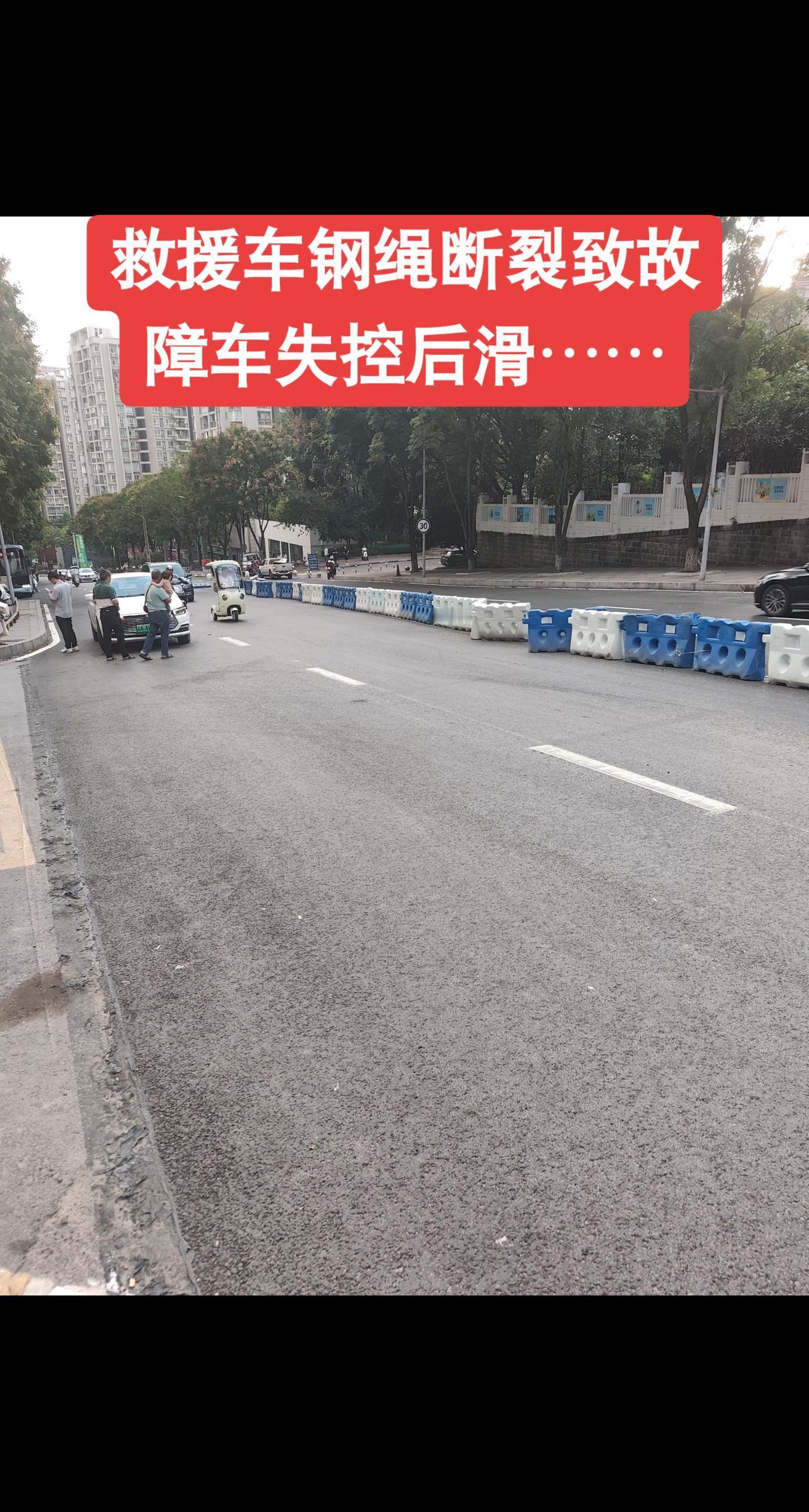 【突发!一辆救援车对故障车救援时固定钢绳断落造成故障车后溜下滑失控】 10月9日